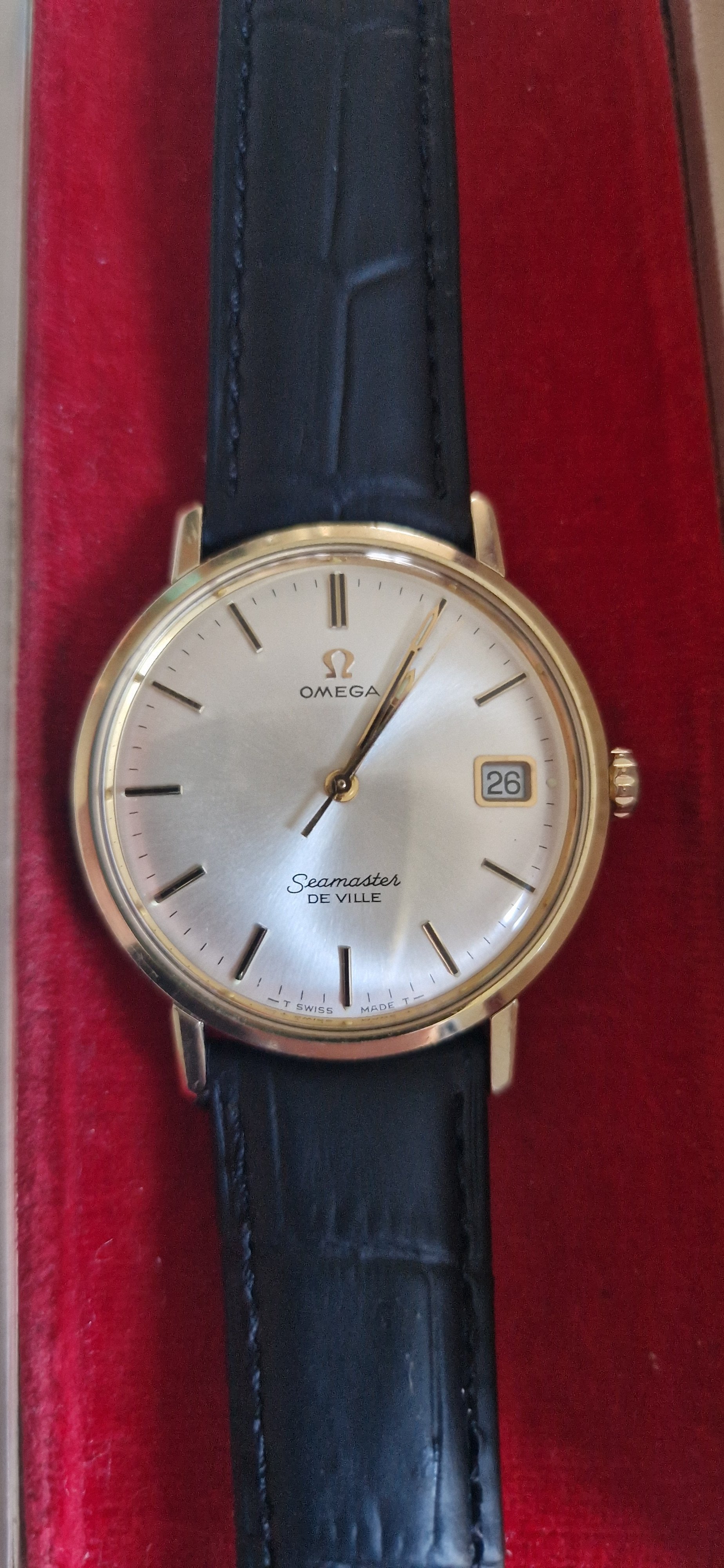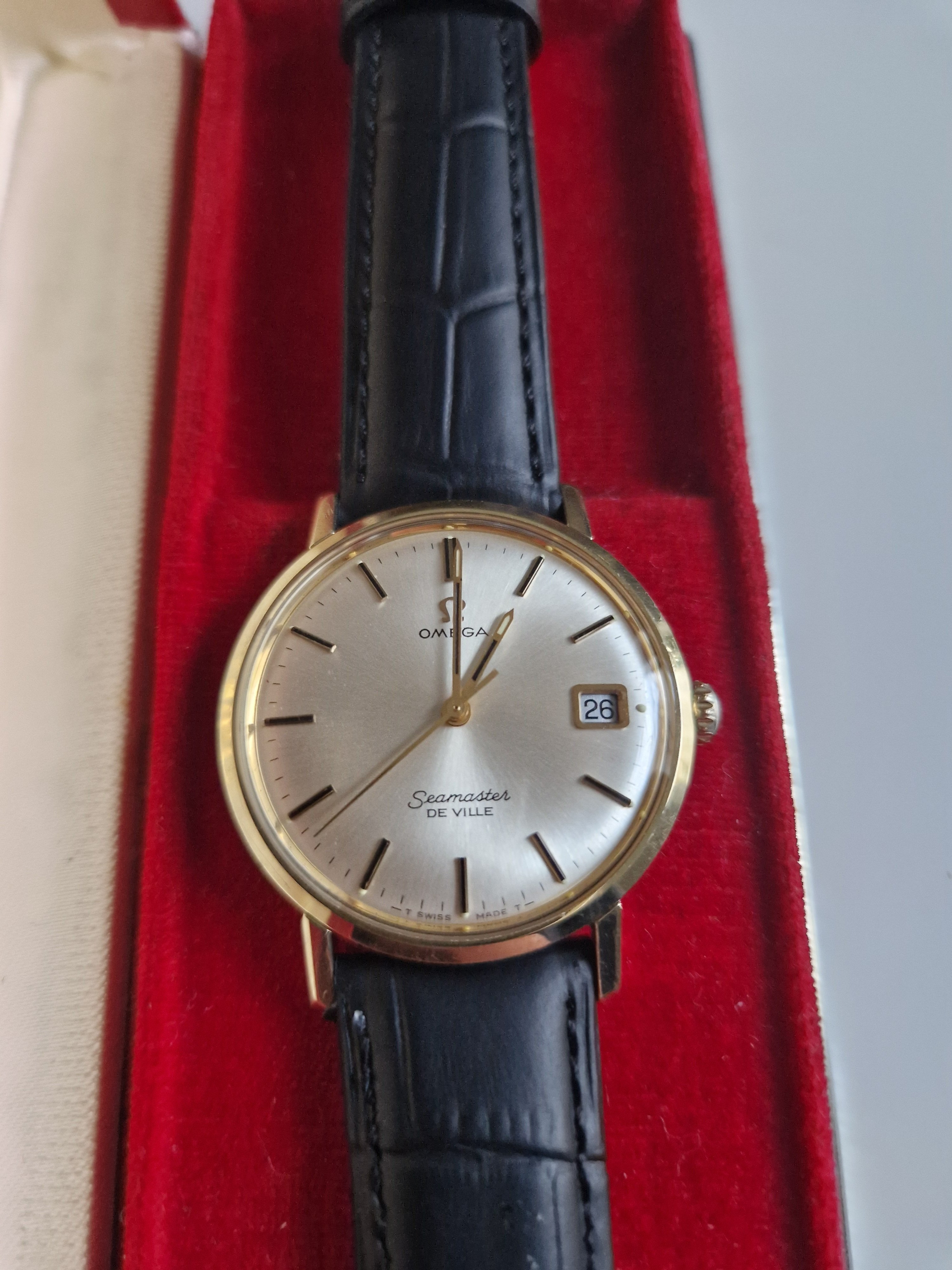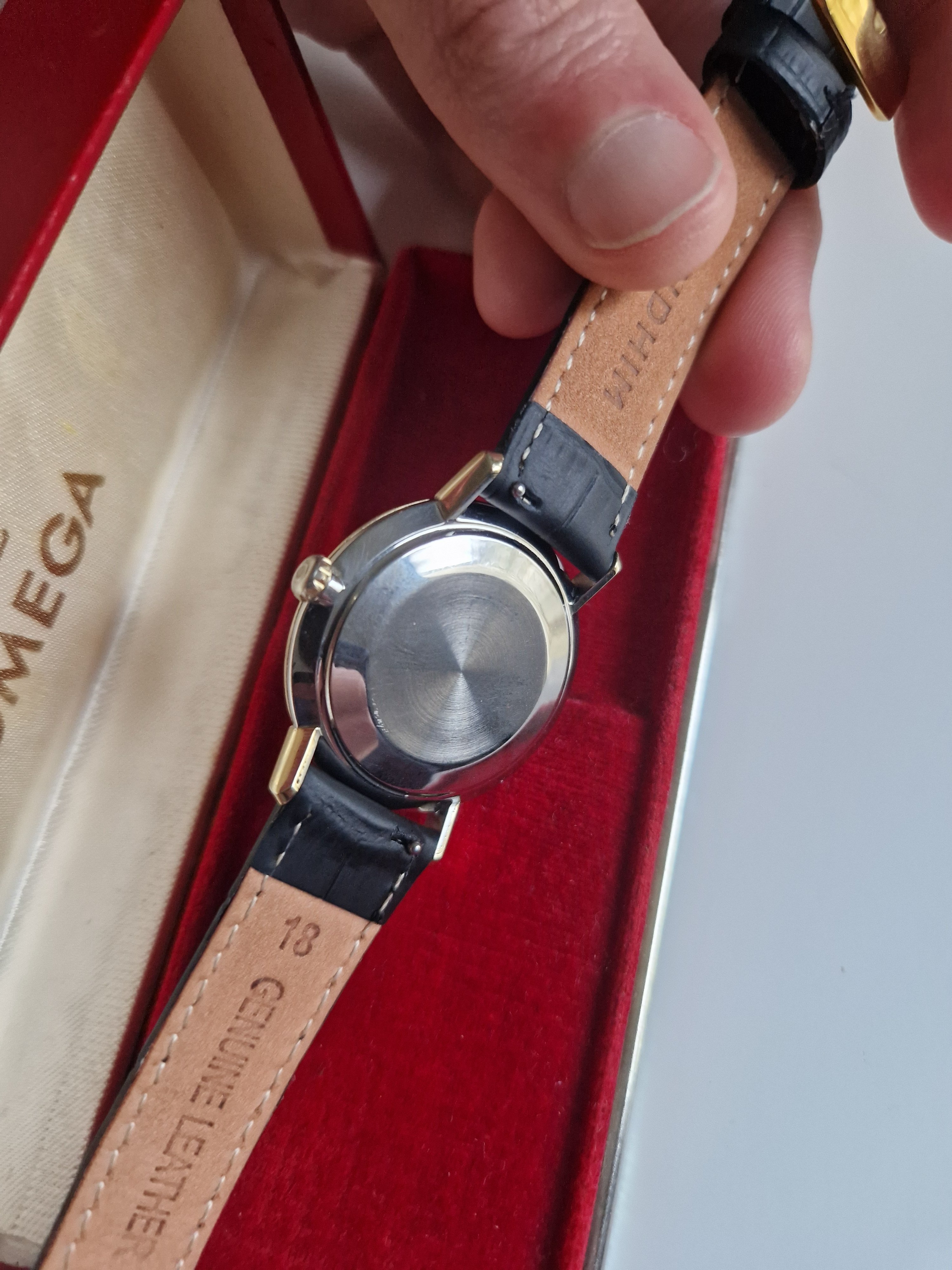Can someone tell based on the pictures which model/models it may be and when the watch is from? There is a quick set for the date when changing the crown between positions if this is useful information. There is no seahorse on the back, is this common for originals? Can anyone see any obvious non-original stuff? I don't see an omega mark on the glass, the strap is obviously not original. The dial maybe a bit nice for the age, redial?