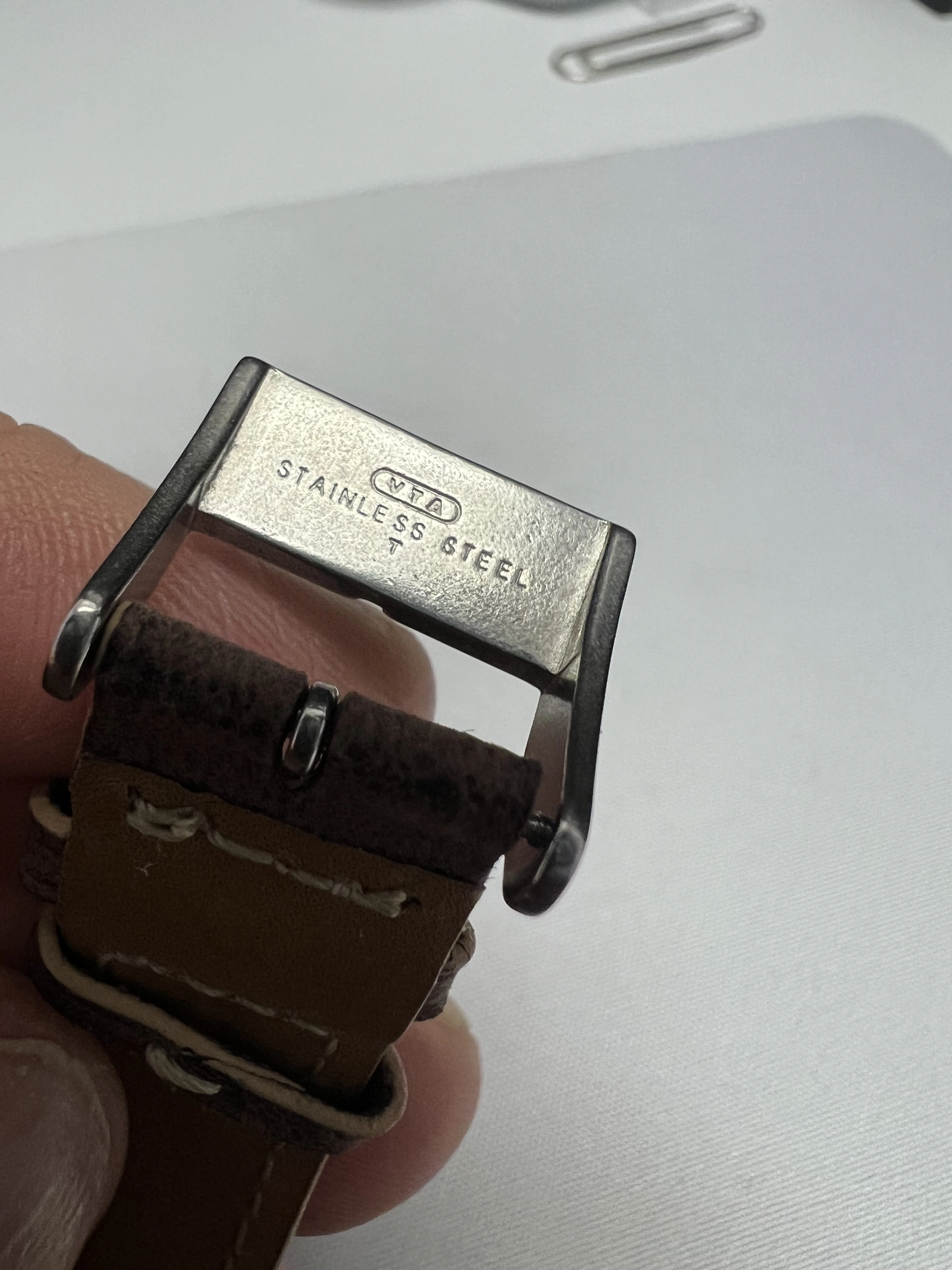 Custom Torre unworn leather strap, matched with pink leather tone. VTA replica KS buckle these are very nice and good option. Marked VTA on buckle back.