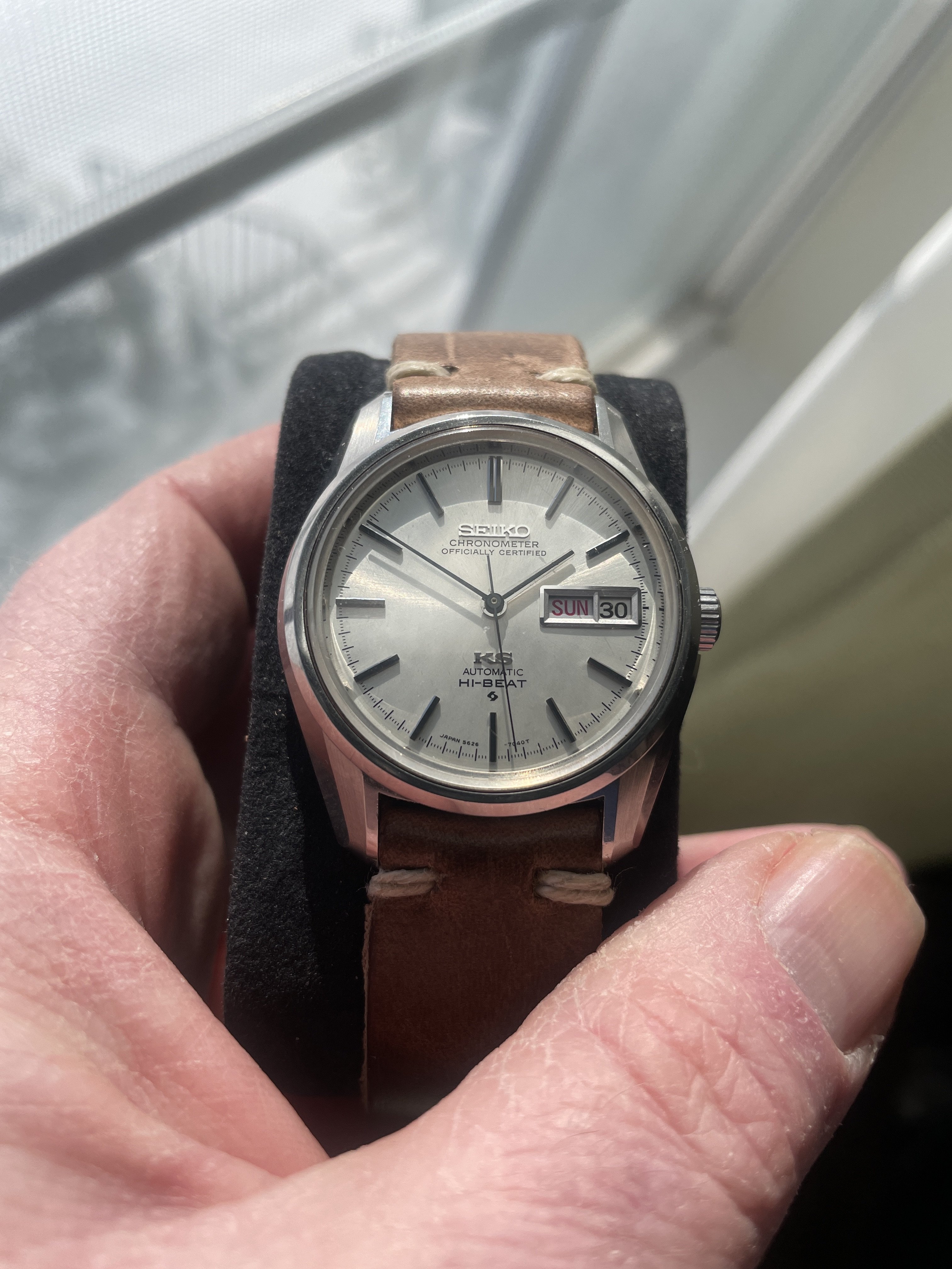 Strap: Black leather strap provided, hard to find OEM KS buckle included