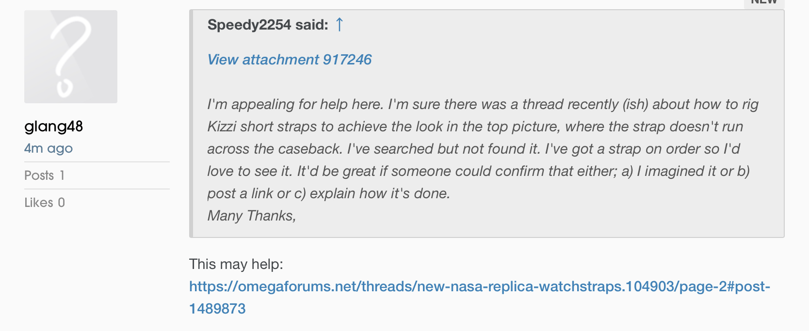 ·I'm appealing for help here. I'm sure there was a thread recently (ish) about how to rig Kizzi short straps to achieve the look in the top picture, where the strap doesn't run across the caseback. I've searched but not found it. I've got a strap on order so I'd love to see it. It'd be great if someone could confirm that either; a) I imagined it or b) post a link or c) explain how it's done.