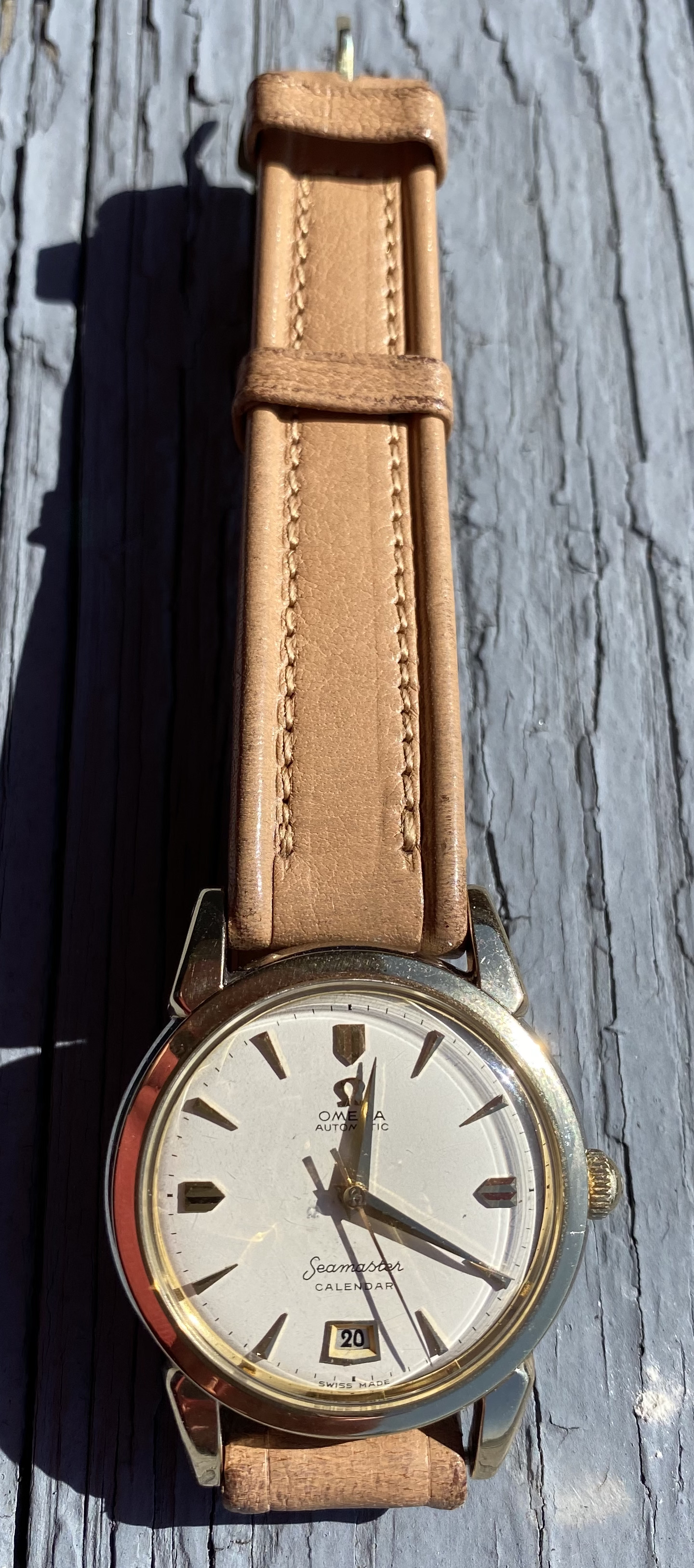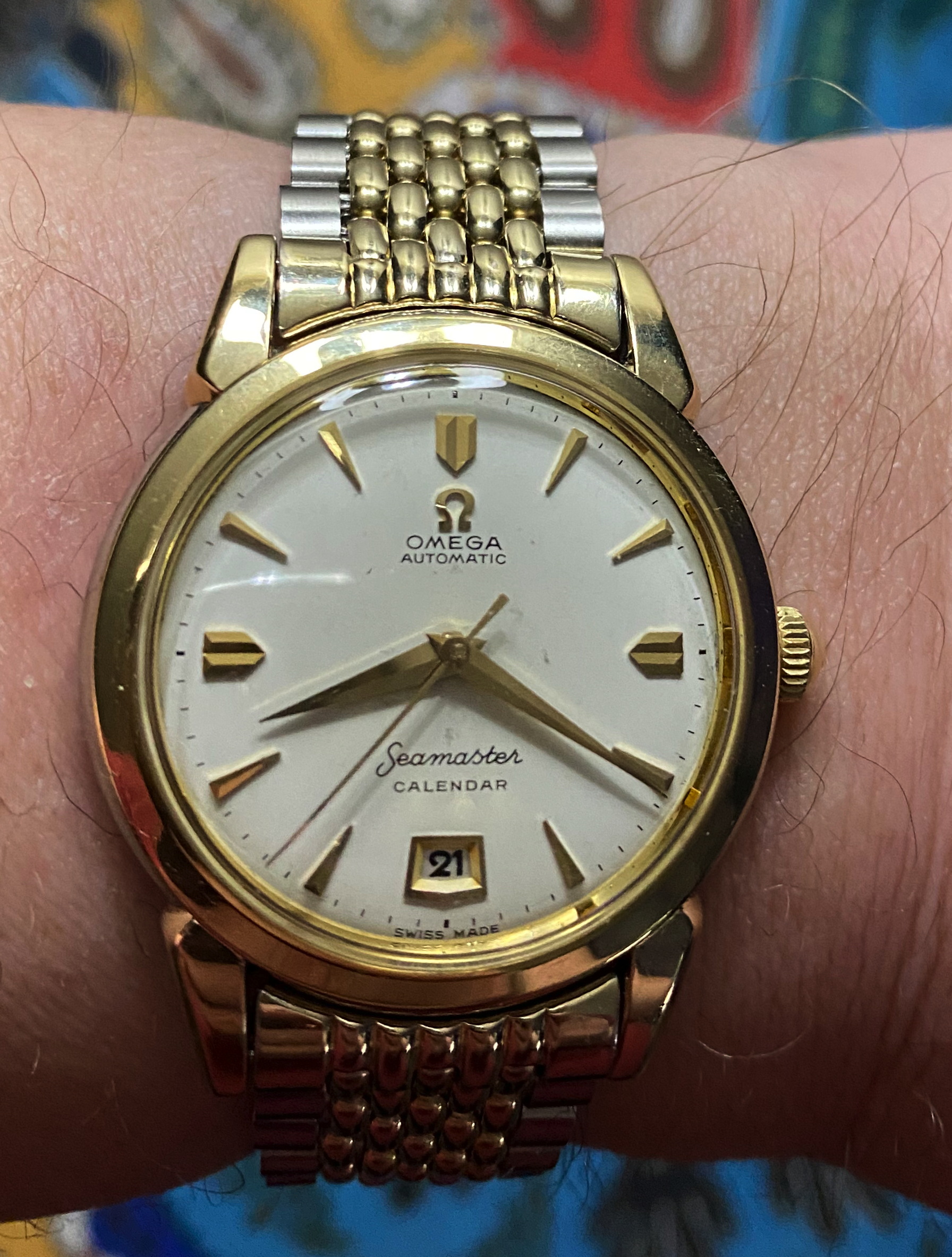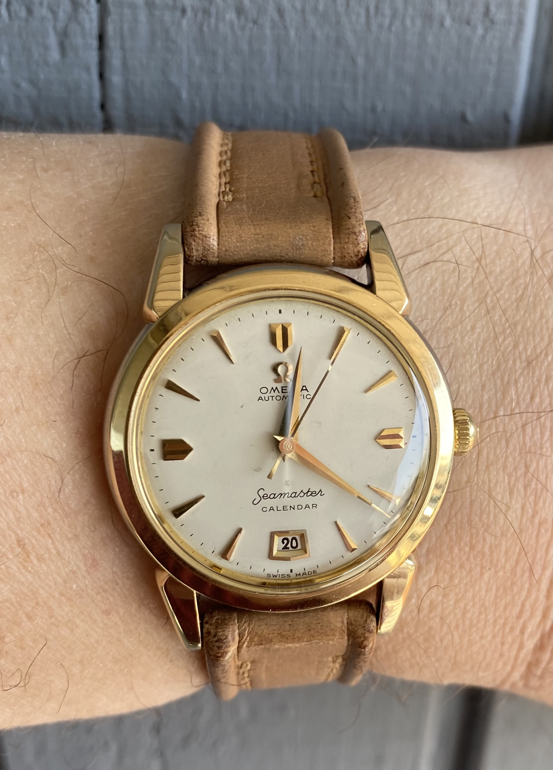 ·My watchmaker was passing by, so he dropped off my Seamaster "date at 6" gold-capped watch he just finished!
