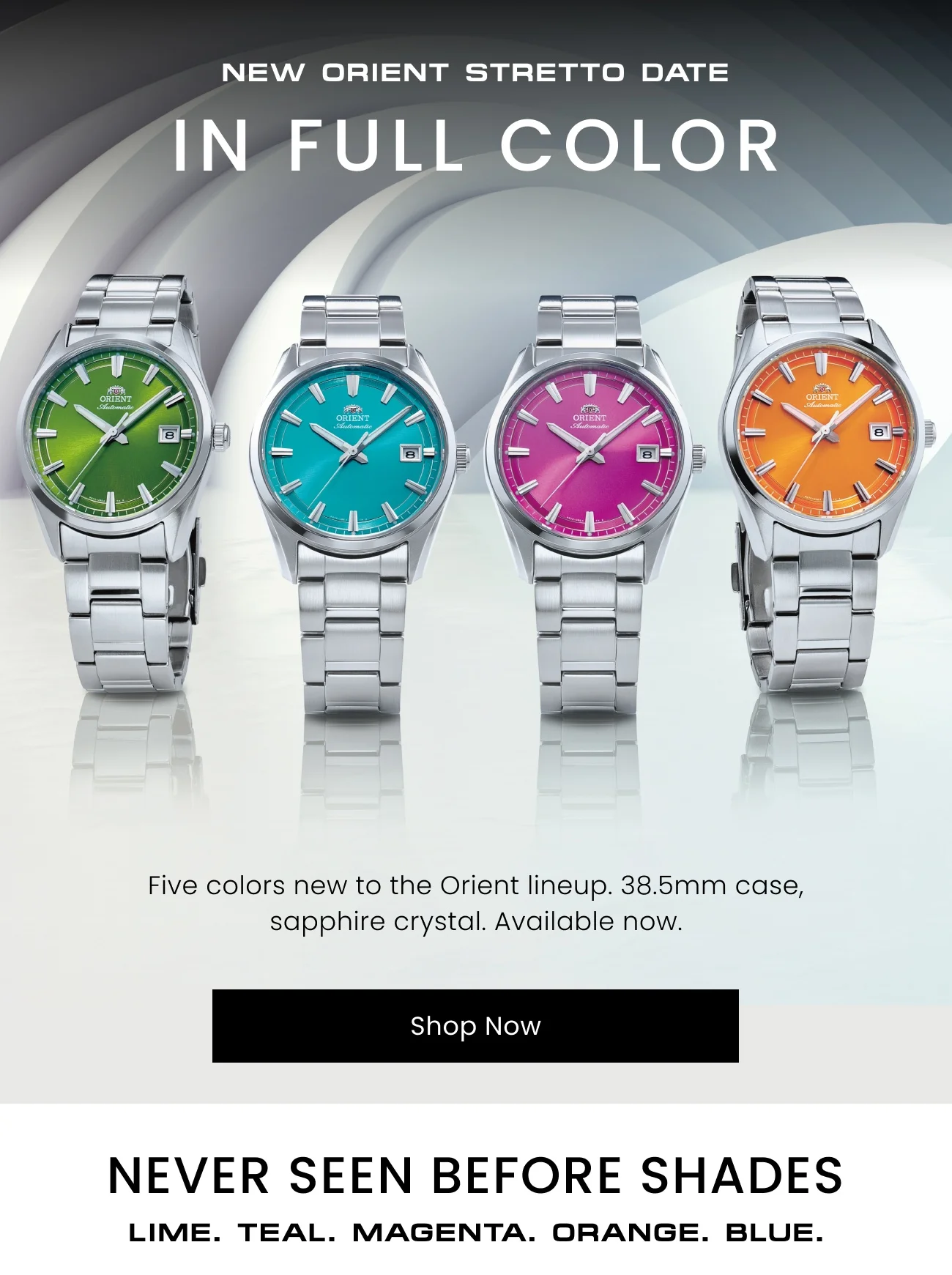 Posts 1,163 Likes 6,032 impalla62ss ·Wed. 11:23am Having experienced numerous bright and boisterous redials seemingly centered in Korea clogging up my eBay searches, I am mortified to see them go mainstream. It appears Orient has brought the style mainstream. You may want to avert your eyes.