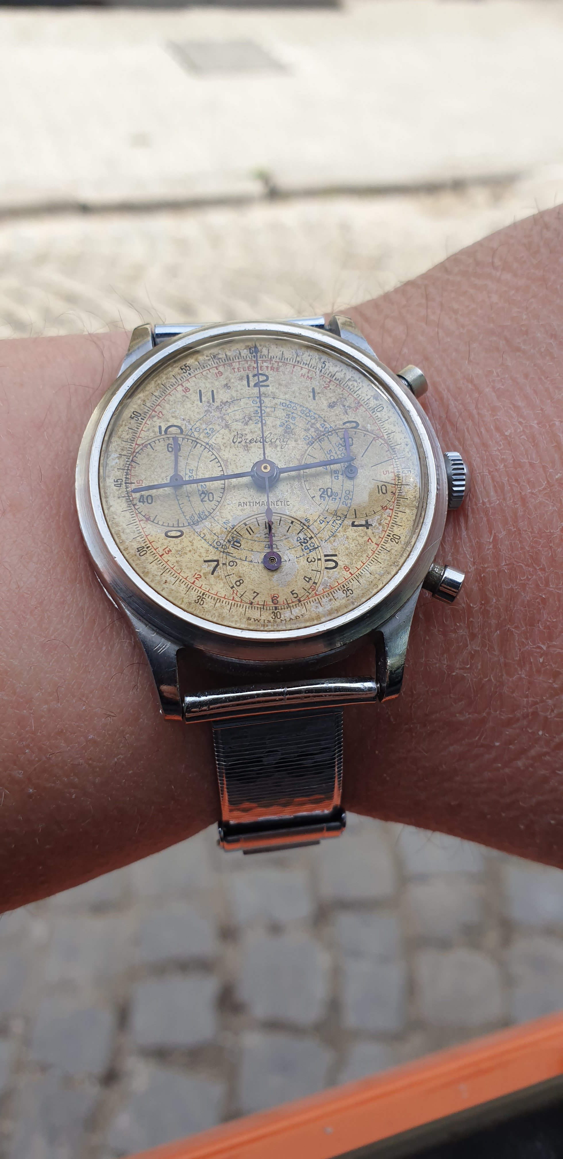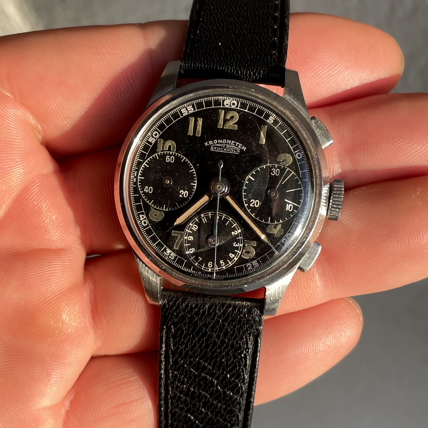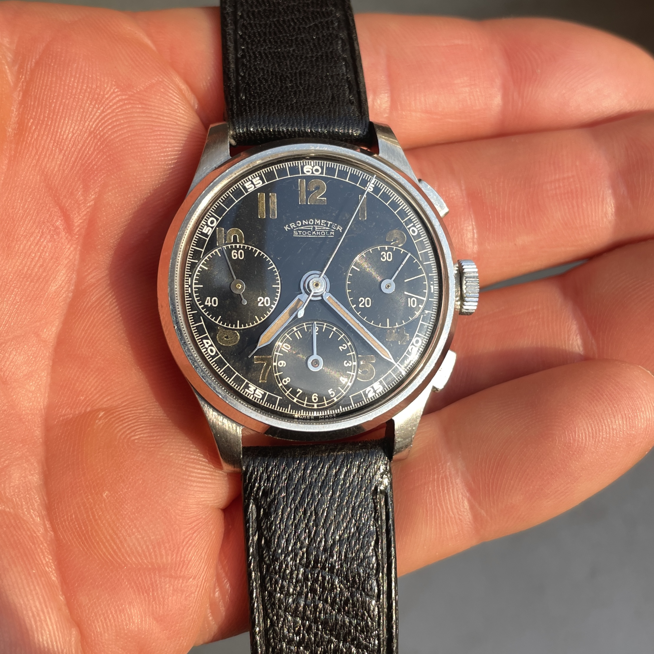 Here is my 1940 three register Kronometer Stockholm in a 35.5mm steel case: