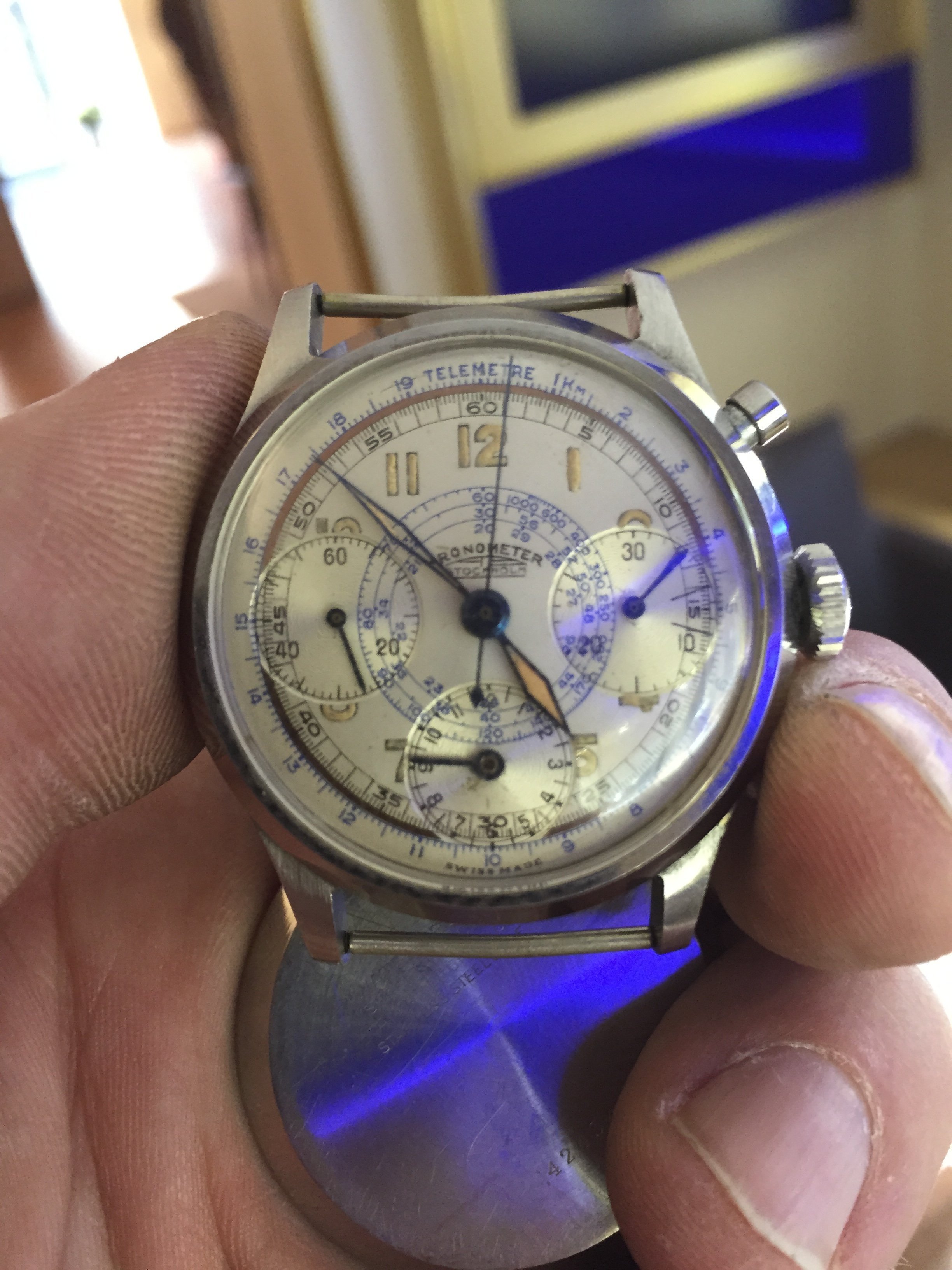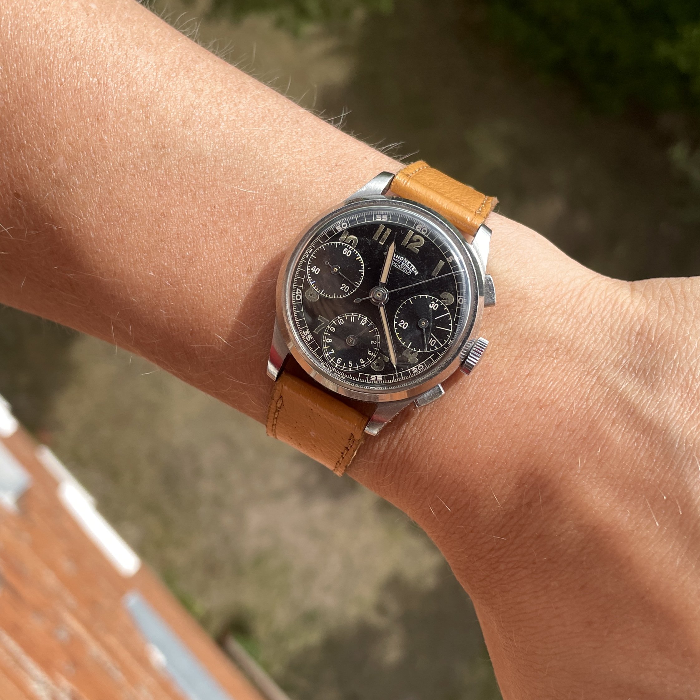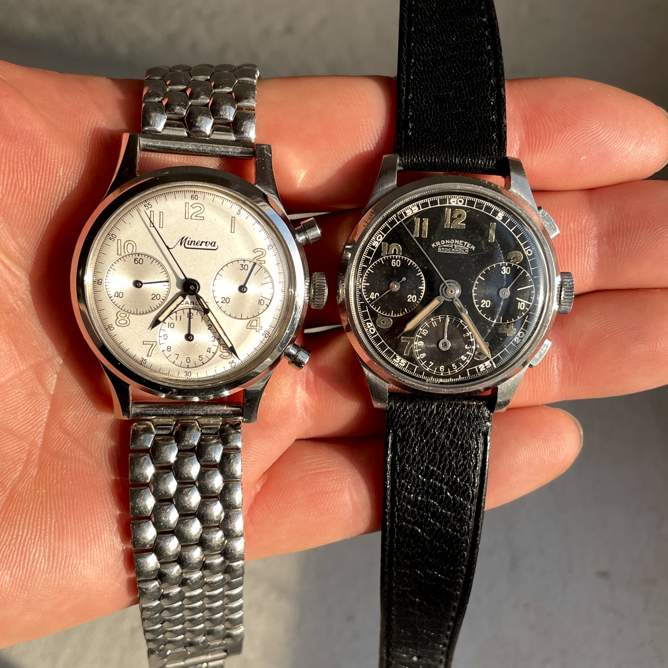 Here is my 1940 three register Kronometer Stockholm in a 35.5mm steel case:
