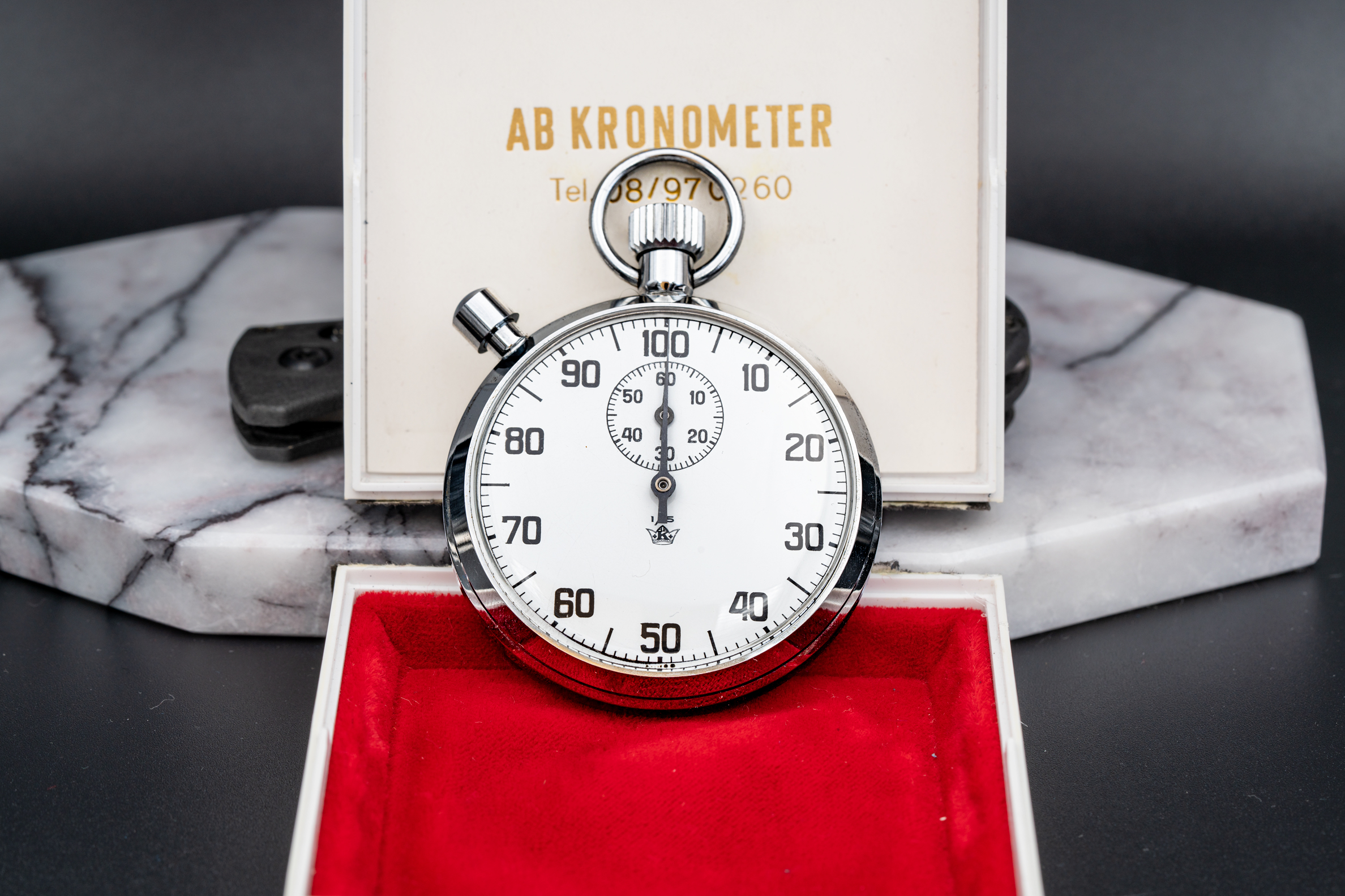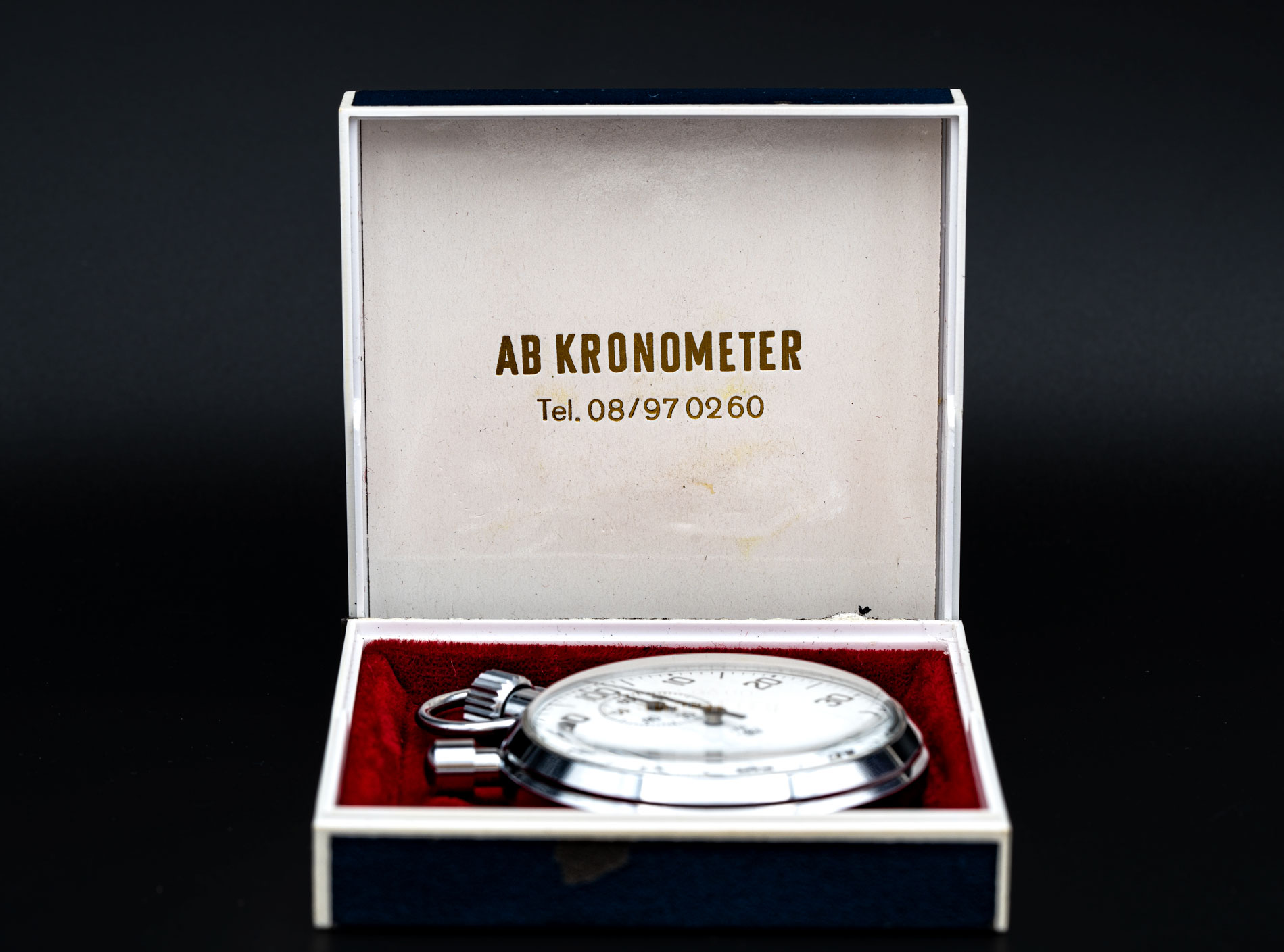 The company “Kronometer Stockholm” was founded in 1933 and where in business until 1976. In the beginning of Kronometer Stockholms history they mostly handled the transactions for workwatches, stopwatches, labwatches, different watches for ships, pocket watches and chronograph-based watches for measuring time. But times changed and so did the companies focus hence they switched to wristwatches which in late 1950s and 60s where there main business. Kronometer Stockholm chose to put even more focus on chronographs to the private market and opened their own shop on Roslagsgatan 9 in Stockholm during the 1960s. They mostly sold expensive pieces through their contract with Breitling. Many of the Breitling watches featured both the Breitling and Kronometer Stockholm logos on their dials, while others displayed the Kronometer Stockholm logo exclusively.
