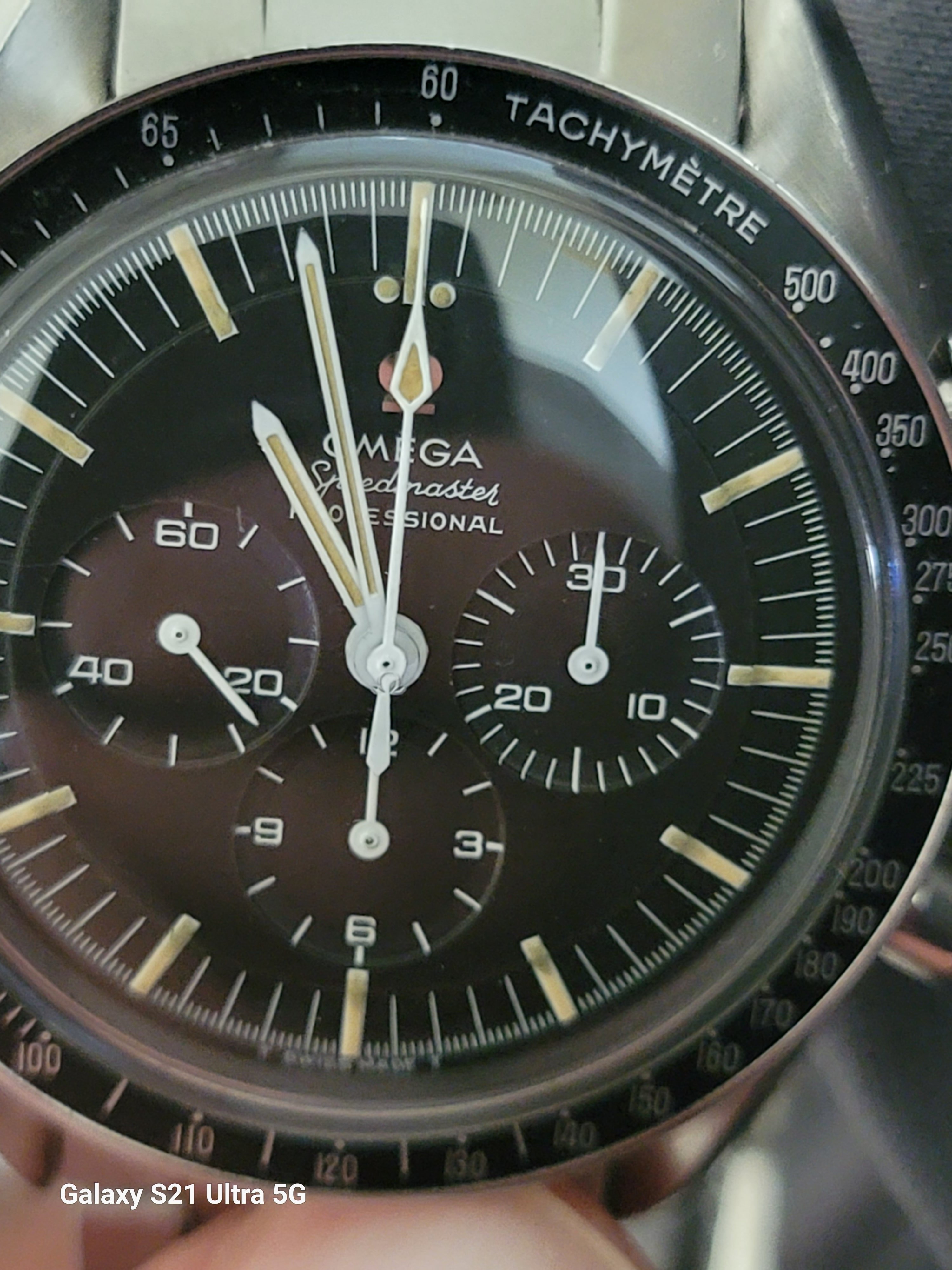 The hands were polished and relumed to color match the dial. The color and texture is stunning and is a perfect match now. I'm glad I finally had this done. While the dial was stunning my eyes were always drawn to the color disparity between the hands and dial.