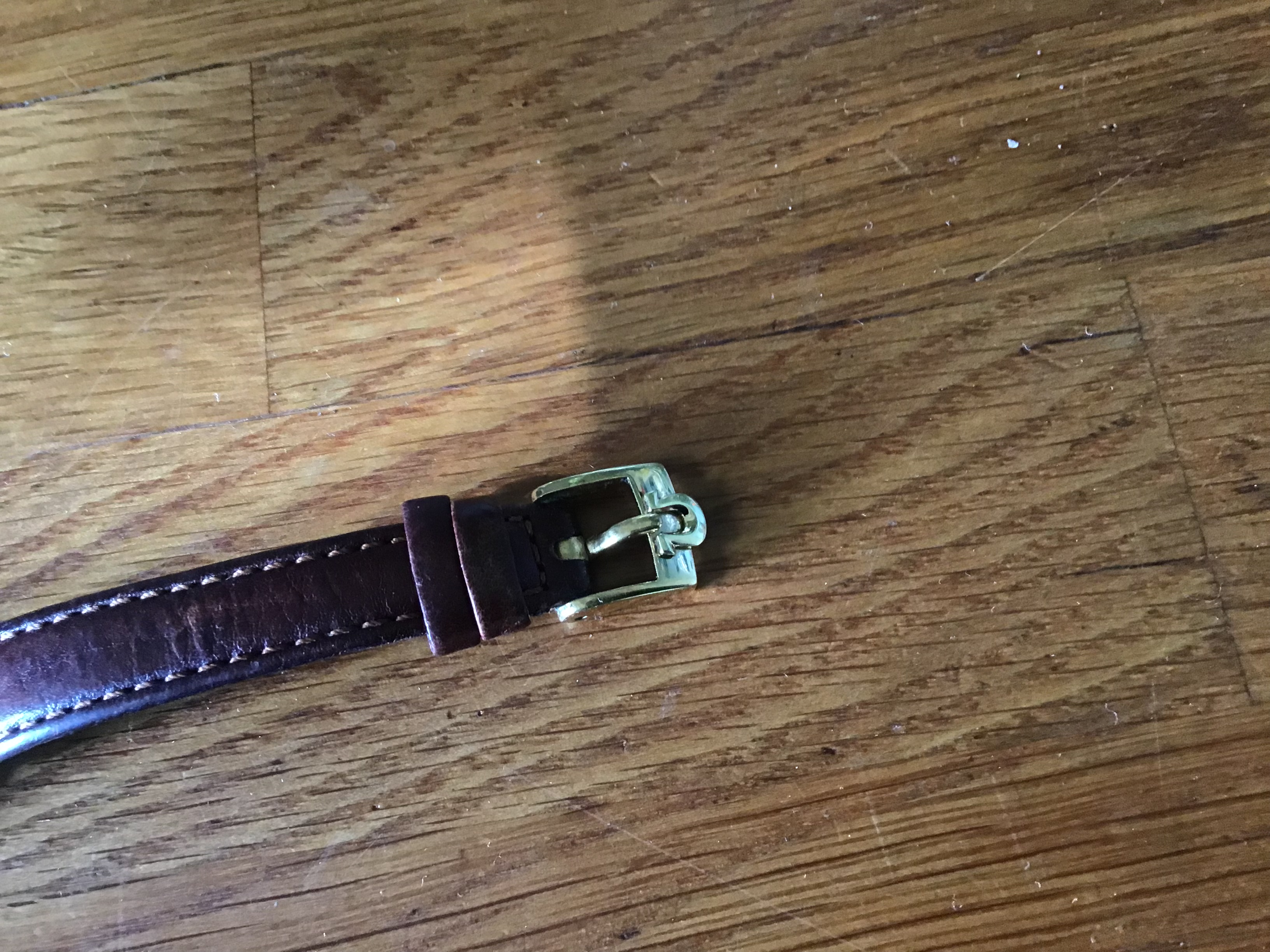·I purchased this ladies watch from a car boot sale about 15 years ago for about £50. I had it serviced by a friend of mine and it’s ran perfectly ever since. I gave it to my wife as a present and she does wear it occasionally. It’s 9ct gold and has the original Omega gold buckle. It is engraved on the back with the royal cypher ER and the date 14th Oct 1965. I have wondered if it was presented to a royal family employee on their retirement. I also wonder how it found it’s way to a car boot sale near Manchester.
