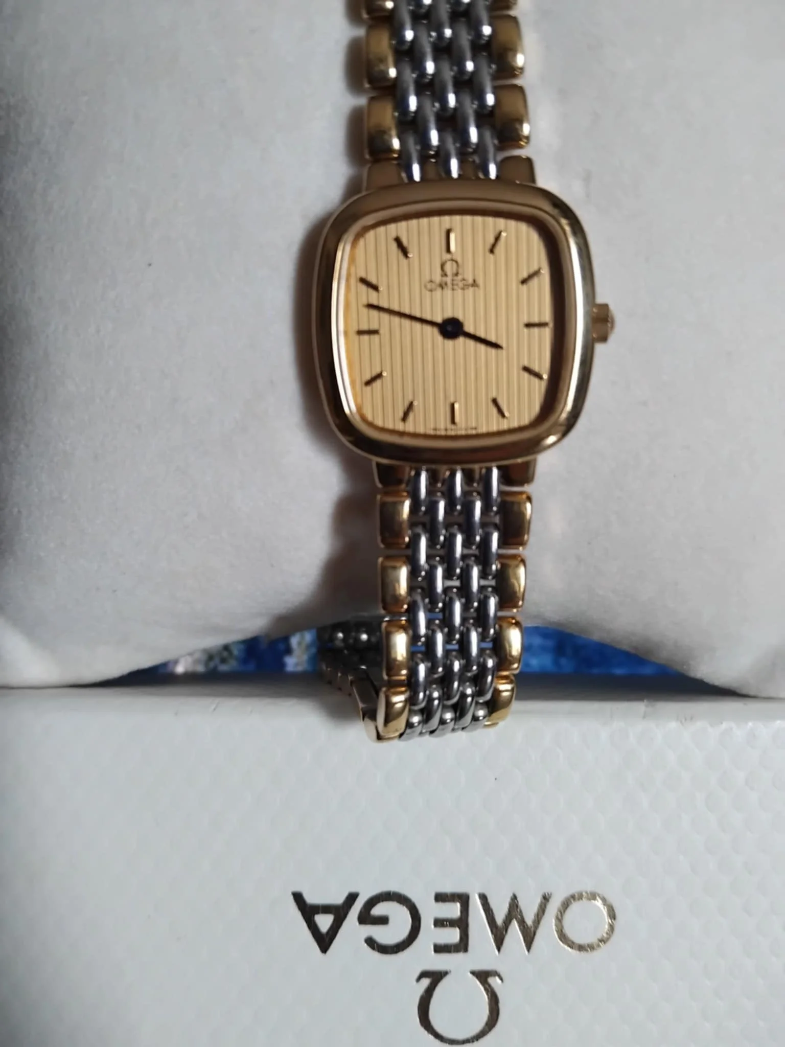 In very good , clean working condition I have a vintage Omega De Ville Gold and Silver coloured stainless steel ladies watch.