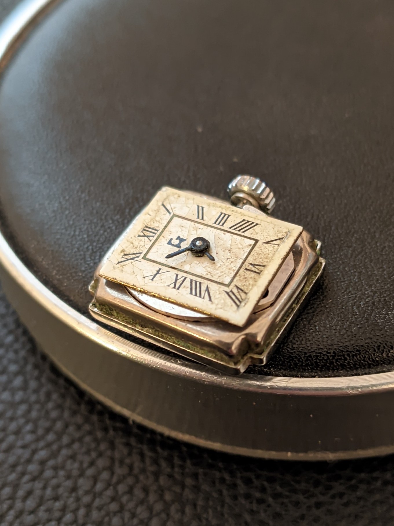 The watch is tiny, really... Barely more than one centimeter, manual movement and running surprisingly well.