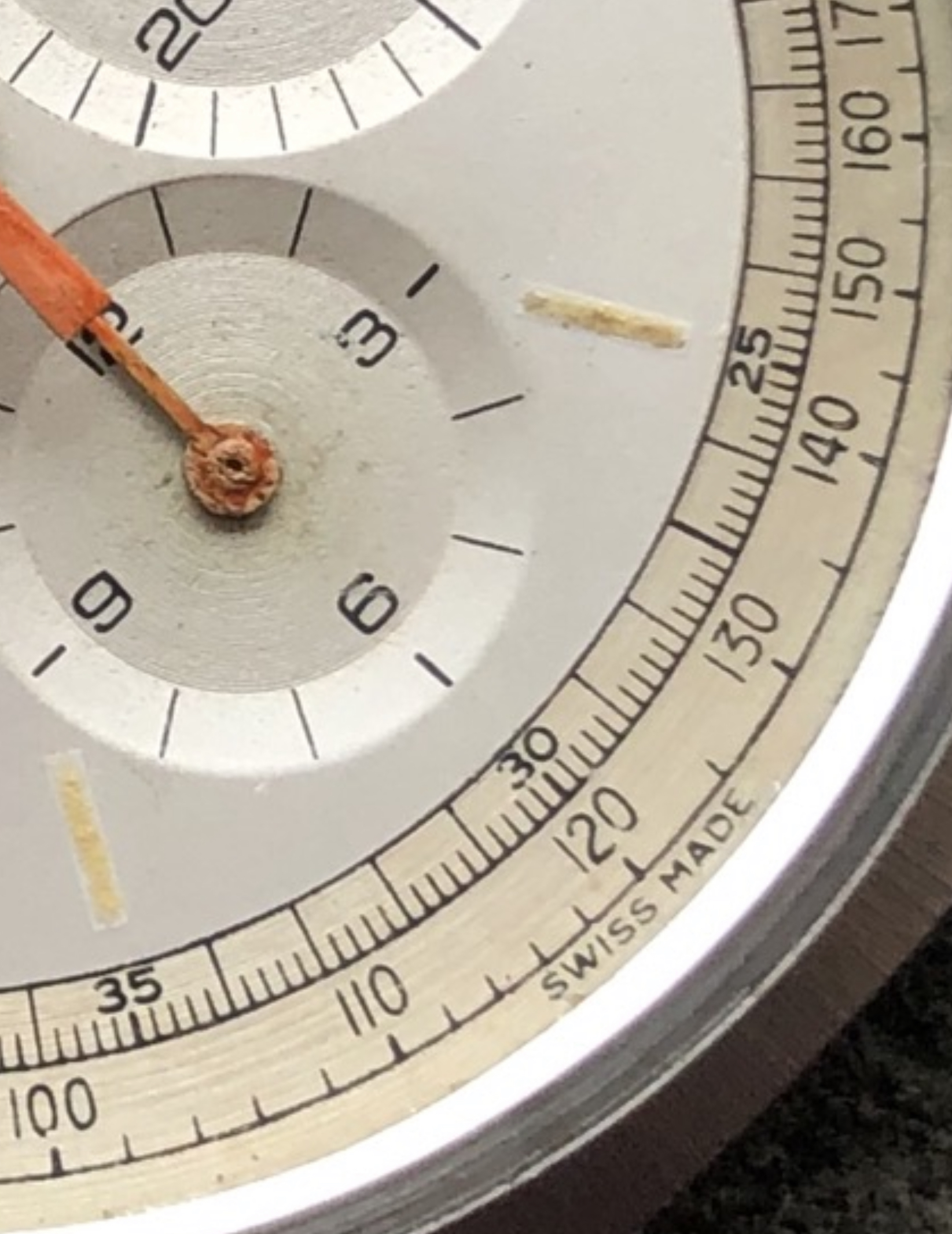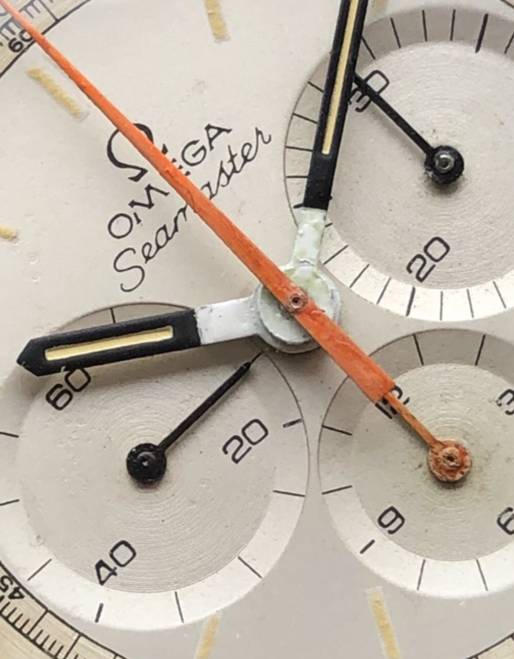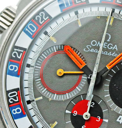A quick (but not definitive) look at other Omega cal. 861 chronographs show that the Omega versions tend to have only one specialty register outside of the hour markers.