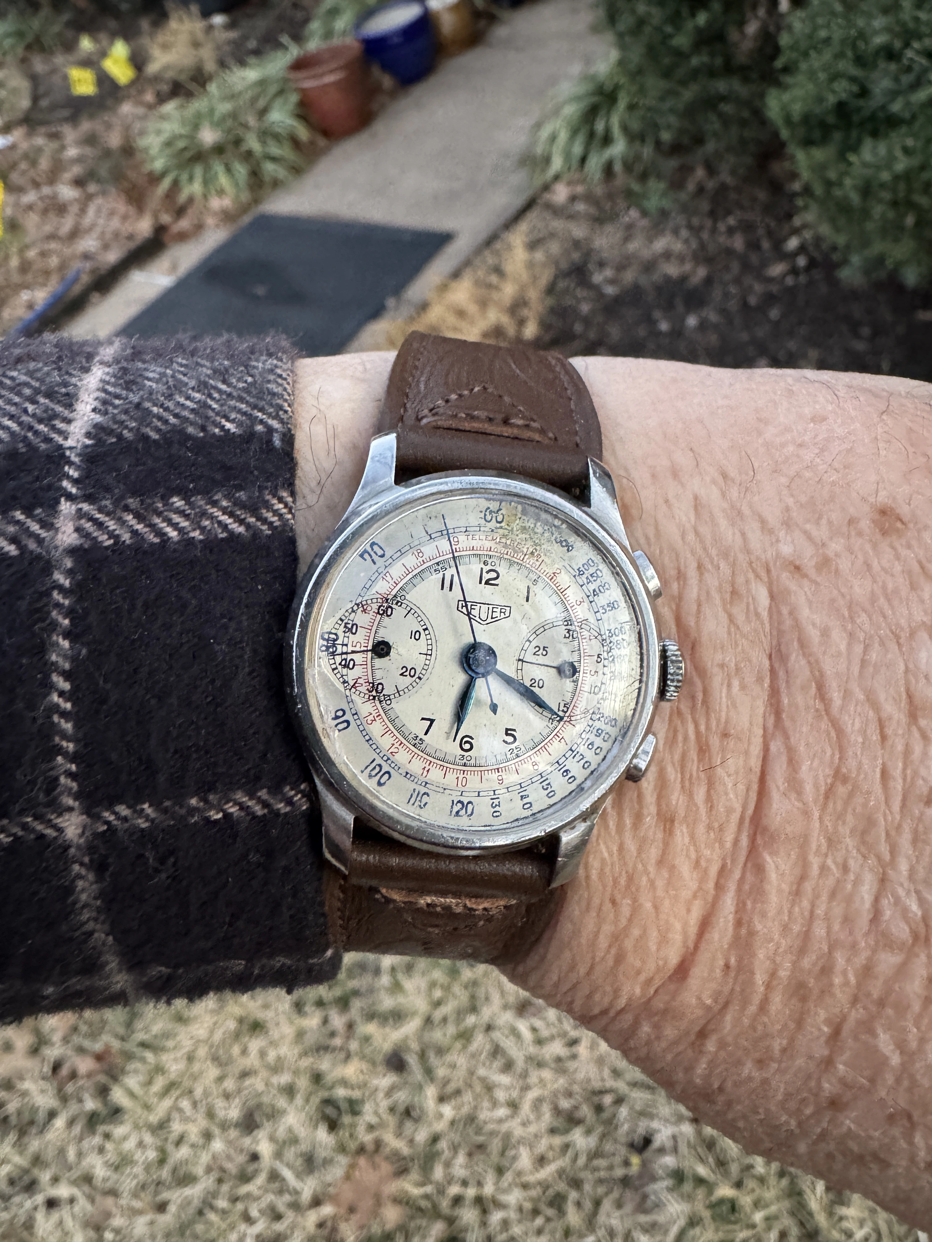 The watch is running and the chronograph function is working fine but it stops occasionally and probably needs to be cleaned and lubricated again. Hopefully, I'll find a good watchmaker at some point willing to service it (my watchmaker is not keen on servicing old Landeron chronographs due to the difficulty of finding parts).