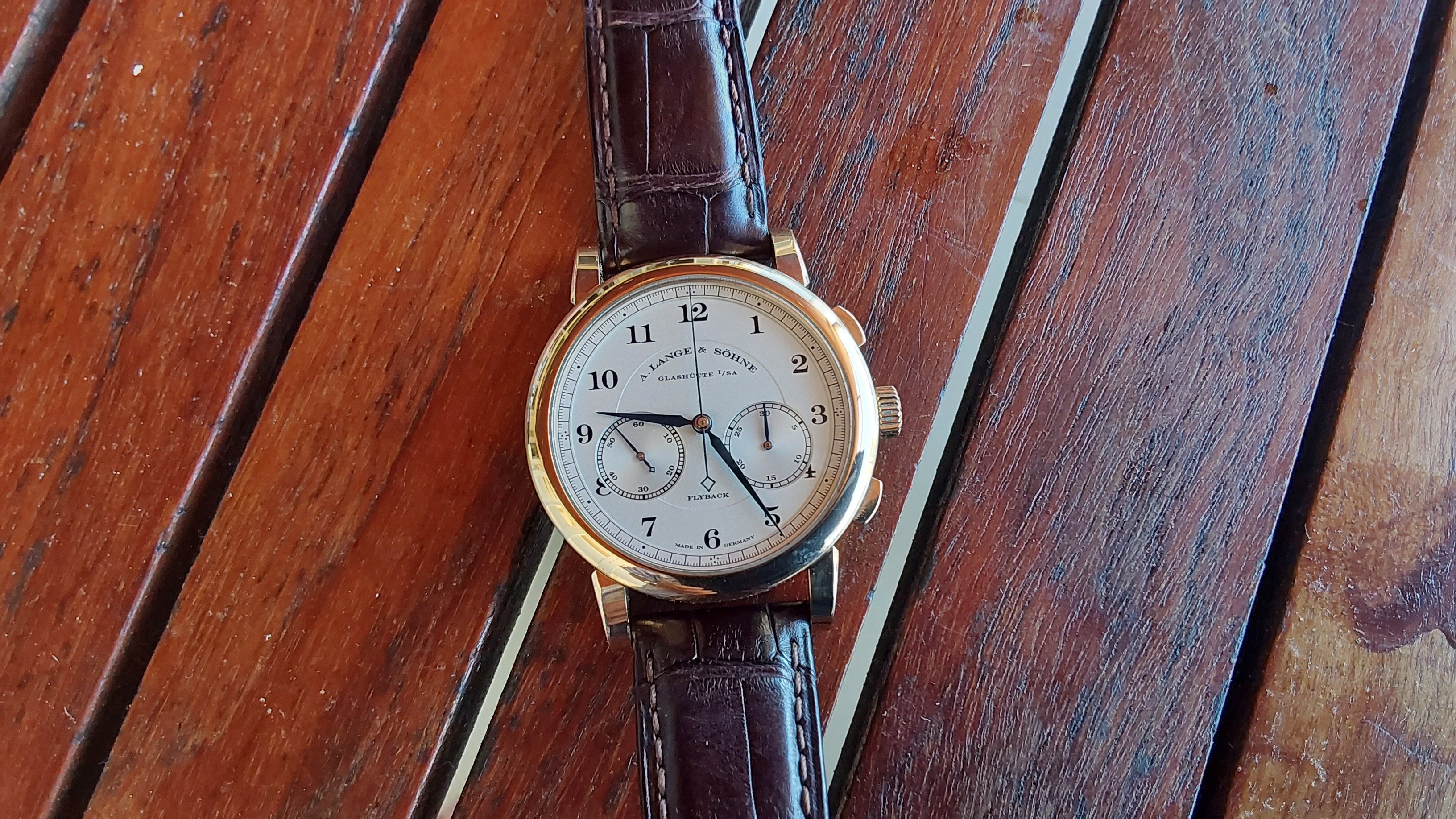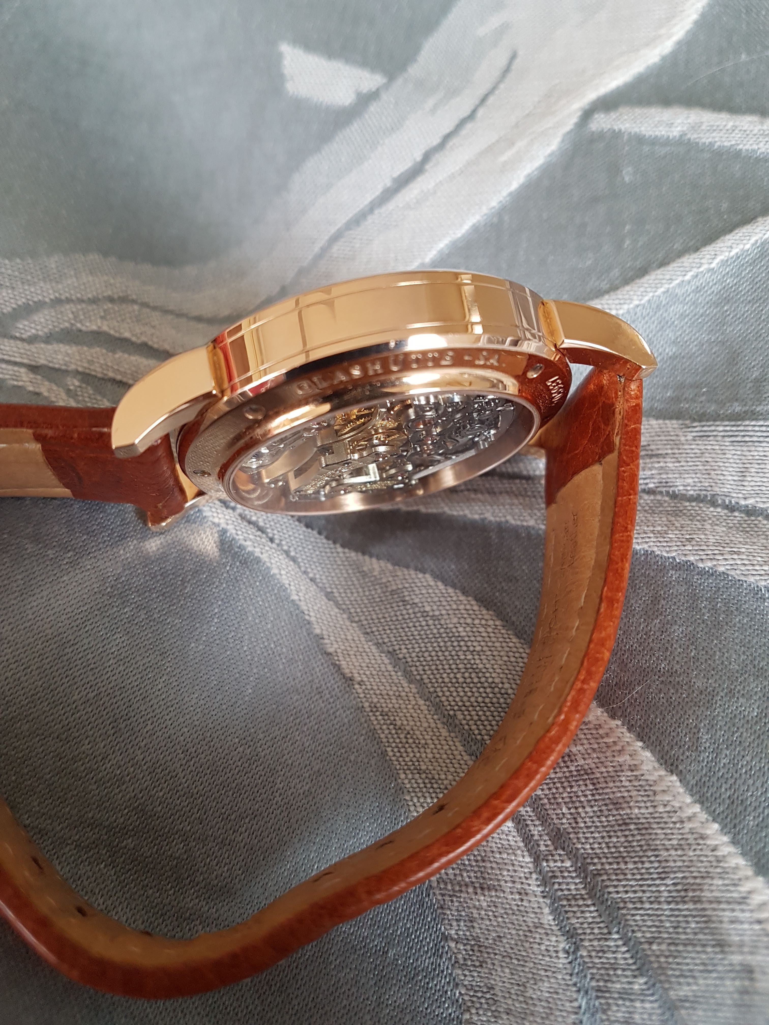 Here we have a Langè 2014 in Pink gold 1815 flyback chrono model 402.032.The watch is in excellent condition .