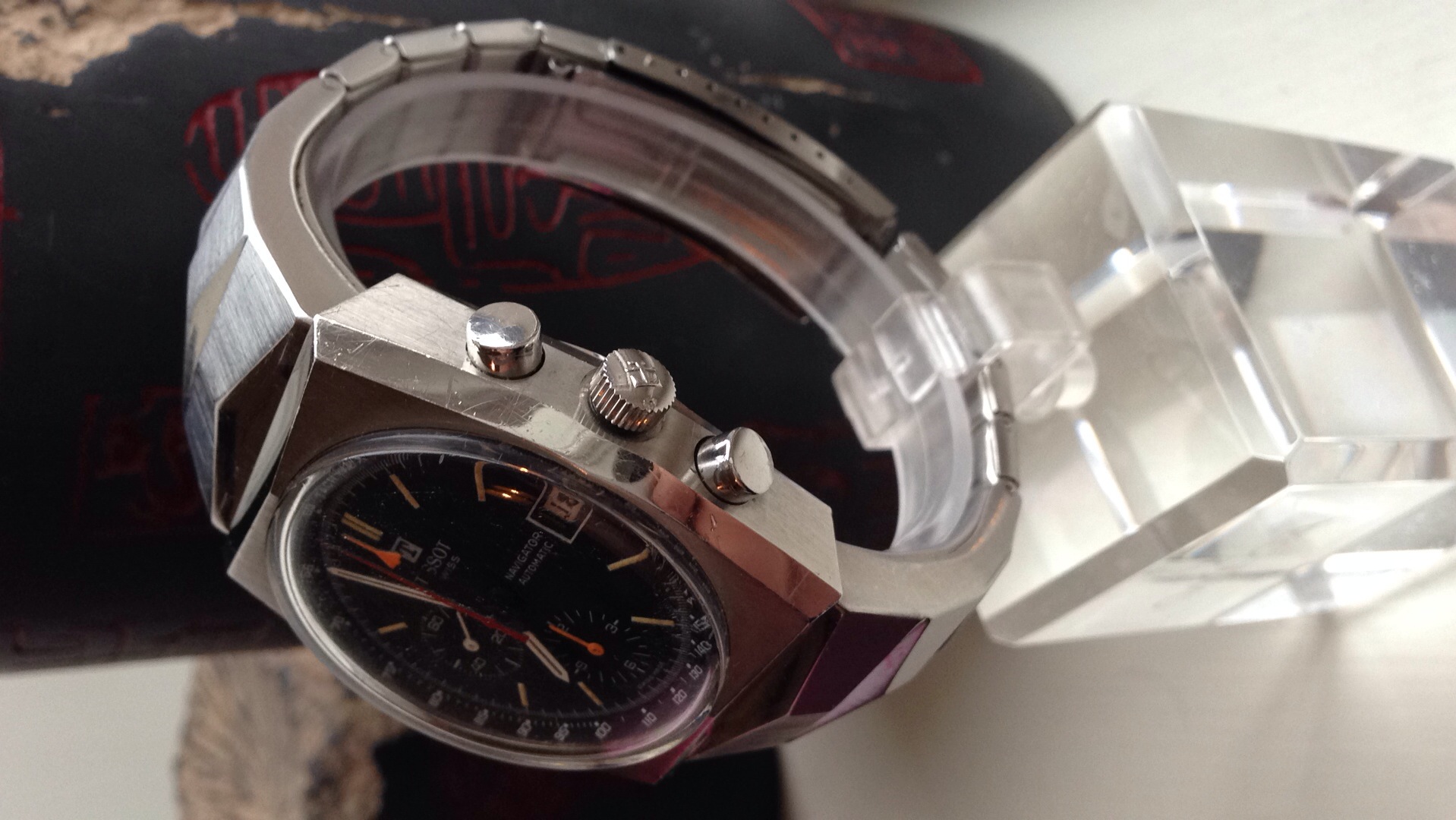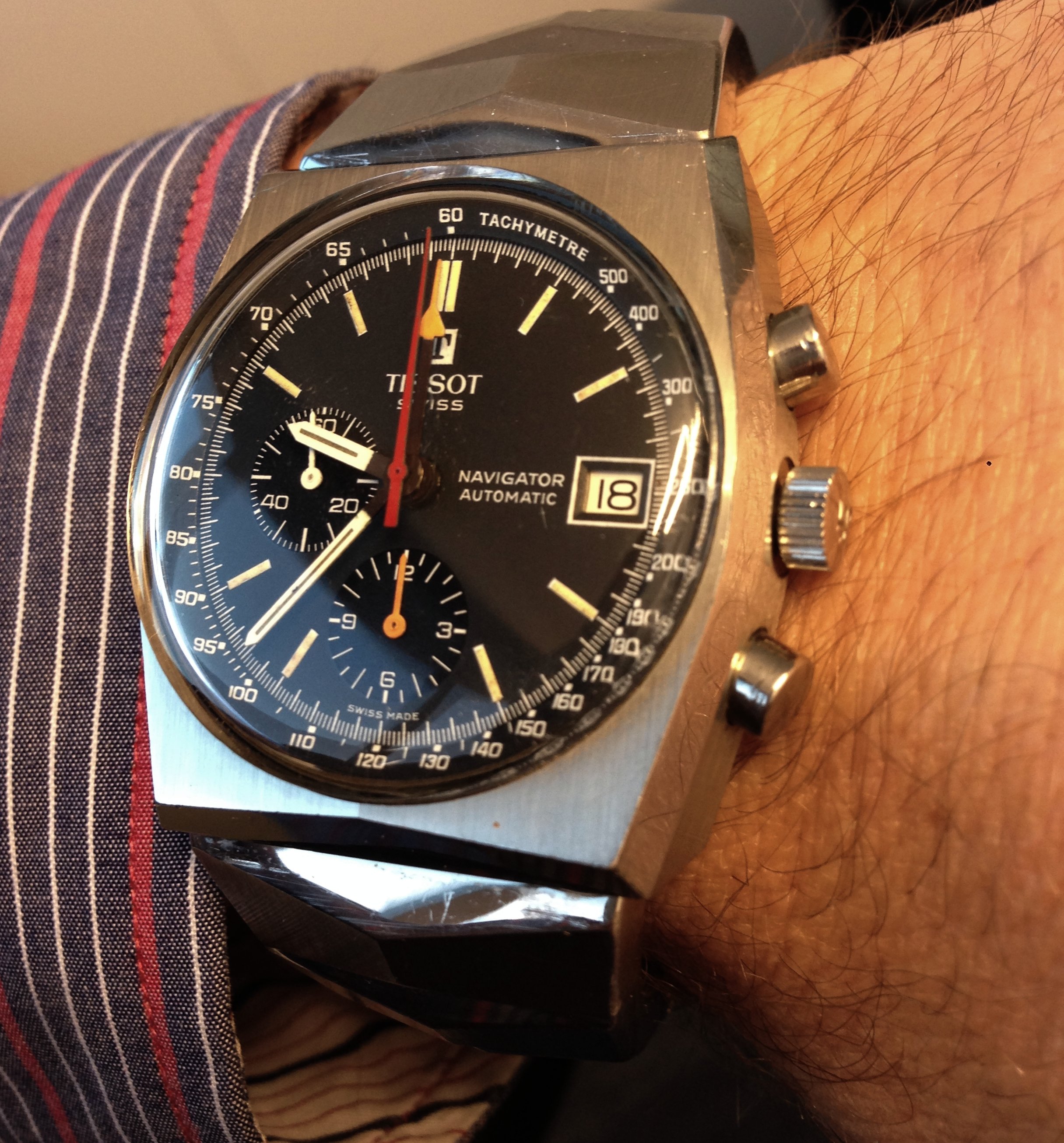 ··LemaniacFrom my collection I have a very nice condition, unusual Tissot Navigator Automatic “Lobster” Chronograph. It has a Lemania sourced caliber 1341 (same as Omega 1040 sans 24h indication).