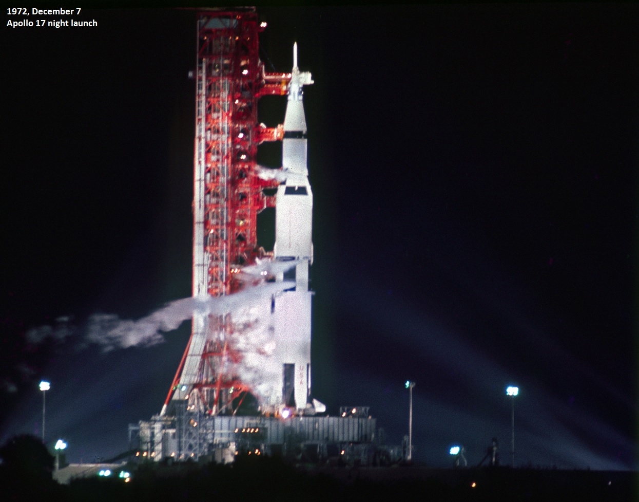 (Remember Apollo 17 was the only night launch of the manned lunar space program !)
