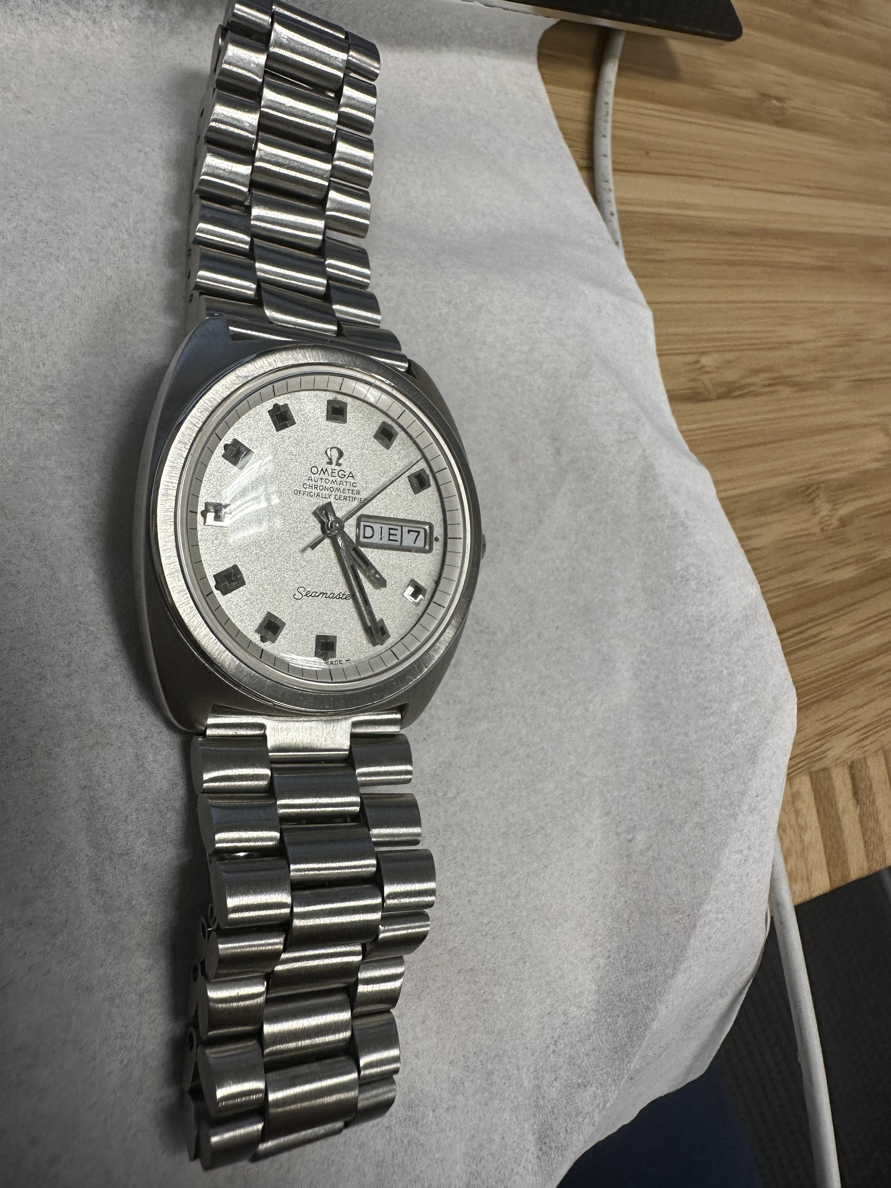 I recently purchased this late 1960s Seamaster 168.034 with a 751 caliber. It has a sparkle dial. The bracelet is a 1162 and everything is in pristine condition for its age. It was serviced pretty recently and keeps time accurately. I don’t plan on getting it wet so I don’t know how much pressure it can withstand now. I don’t know a ton about the omega history, or where this seamaster falls in all the variations. Any bits of information would be appreciated, or what you think this watch would go for. I hope I got a good deal.