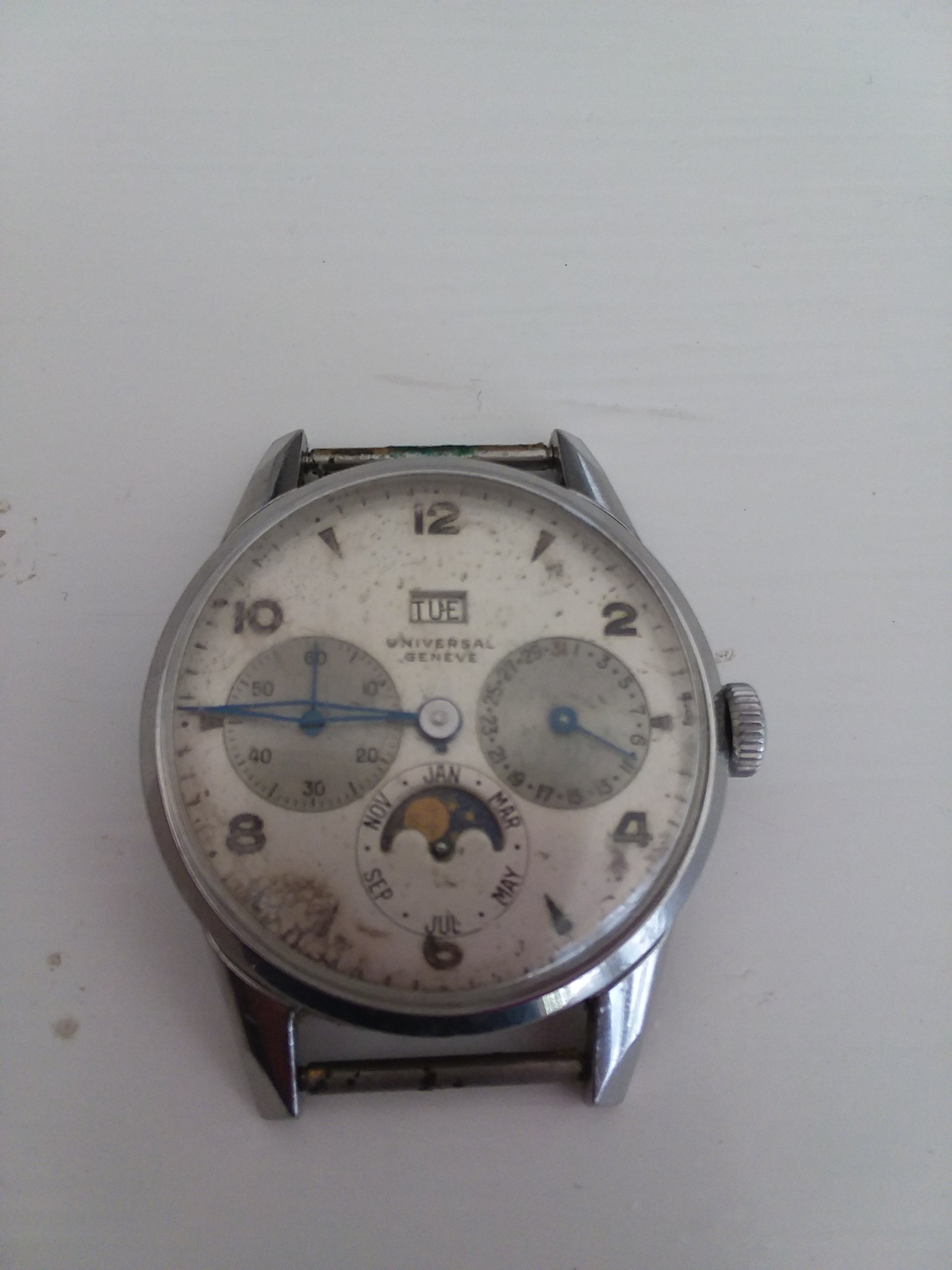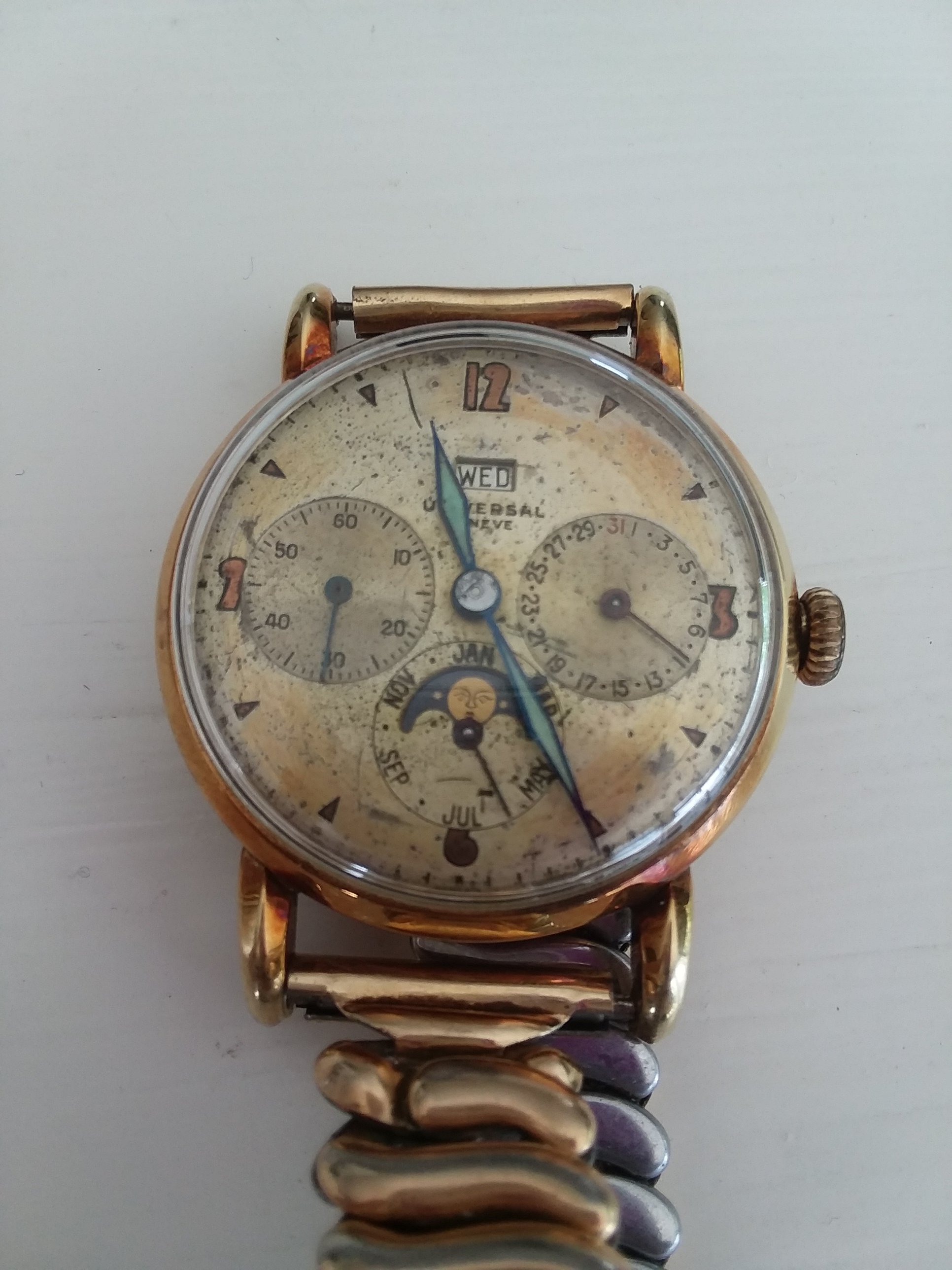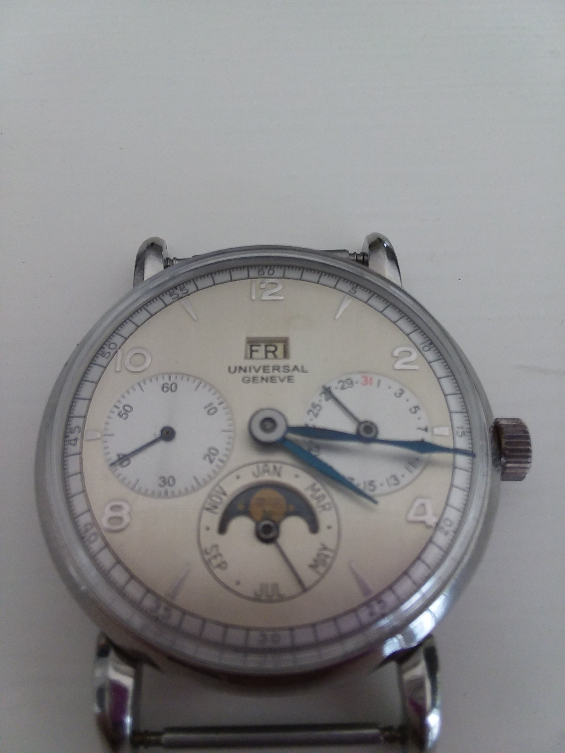 I have a similar Calender in WG, with no.1230284, and I have had it for approx. 30 years along with 2 others with the same movement. When I bought it, at an auction of an estate, I left to my usual repairman, who send it to Universal, a brand that was widely distributed in Denmark.
