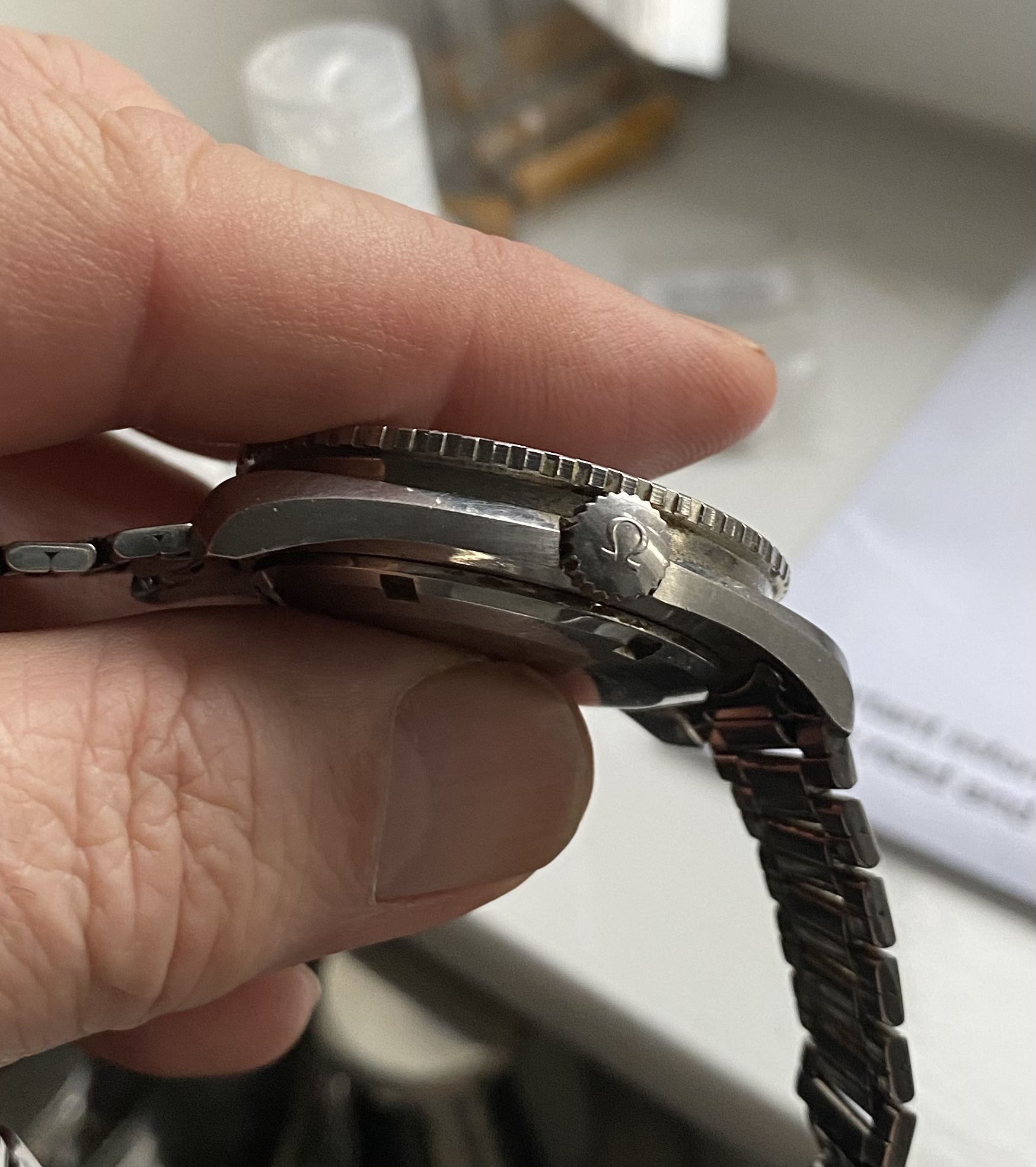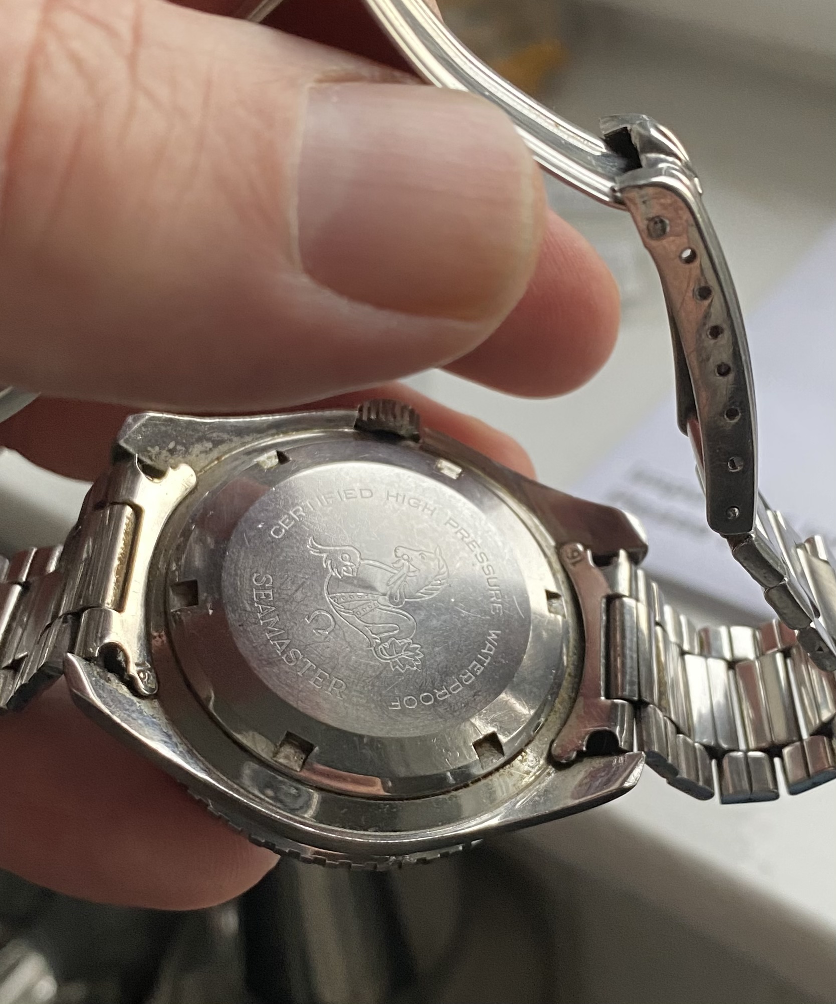All original as far as I can see, down to the naiad flat foot crown and “narrow omega” stamped crystal.