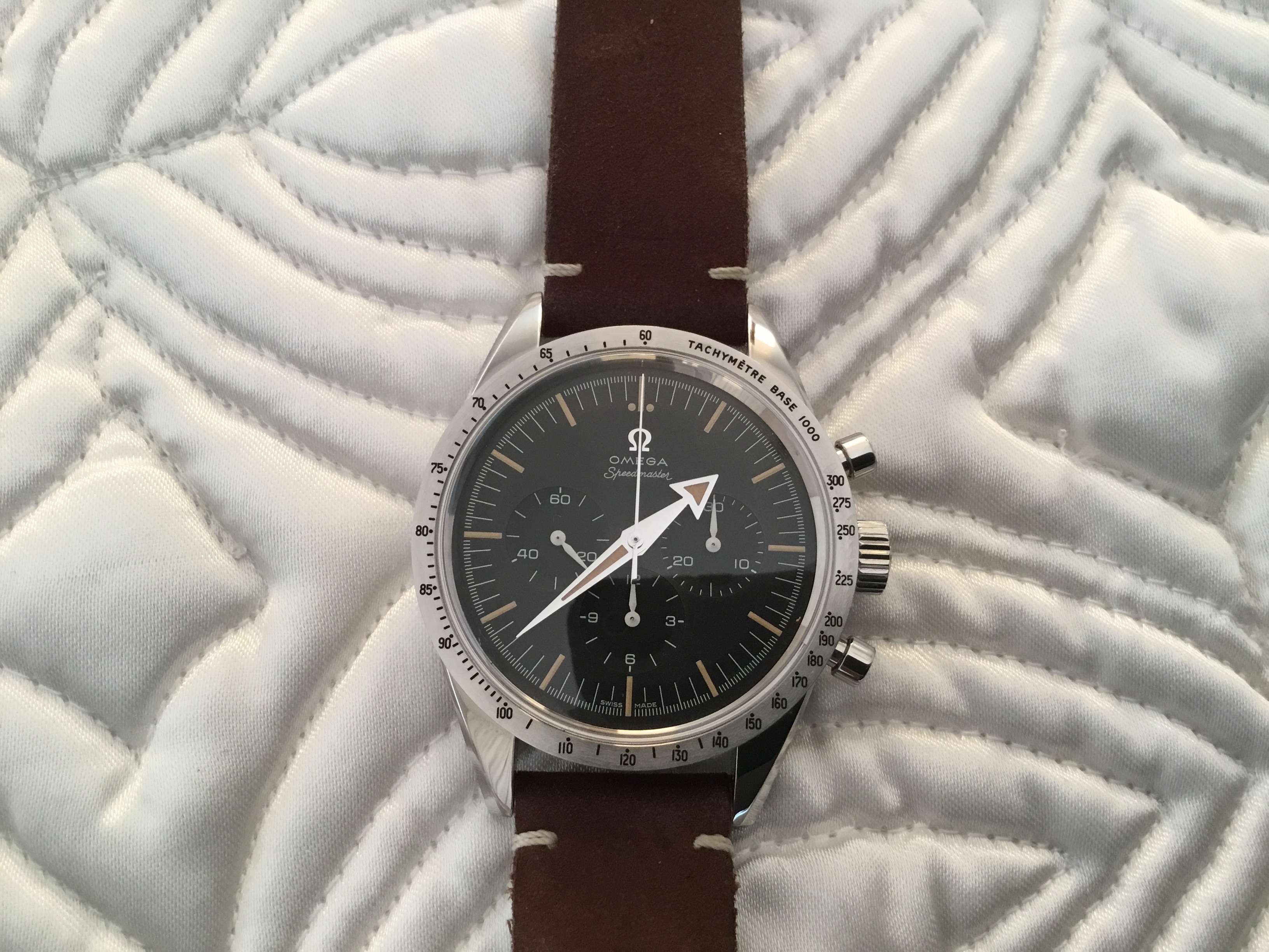 This is the Ref 311.10.39.30.01.001 with Movement Cal 1861 - Manual-winding chronograph movement with rhodium-plated finish and 48hr power reserve. Crystal is hesalite with OMEGA logo in center