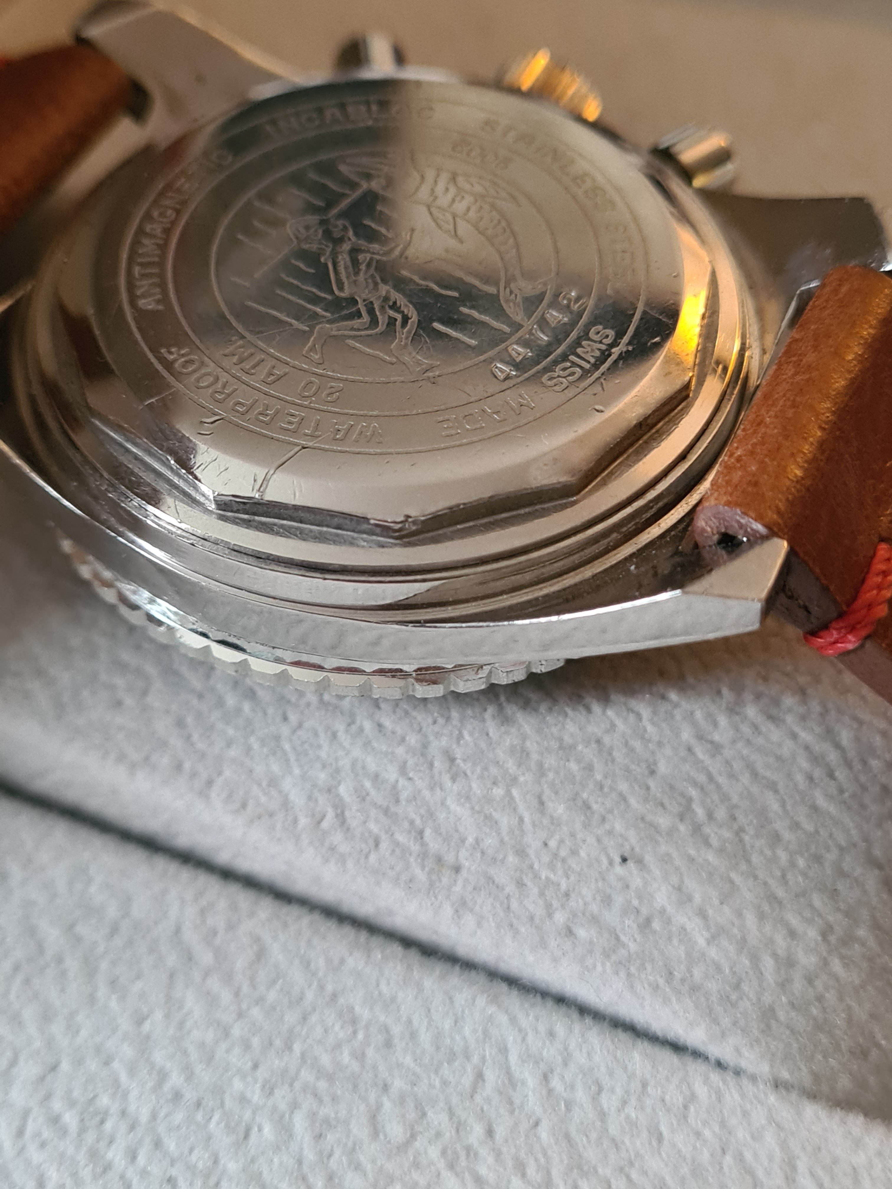 The watch is all original, serviced in 2023, and keeping excellent time. All chrono functions work as designed. Bought from the original owner.