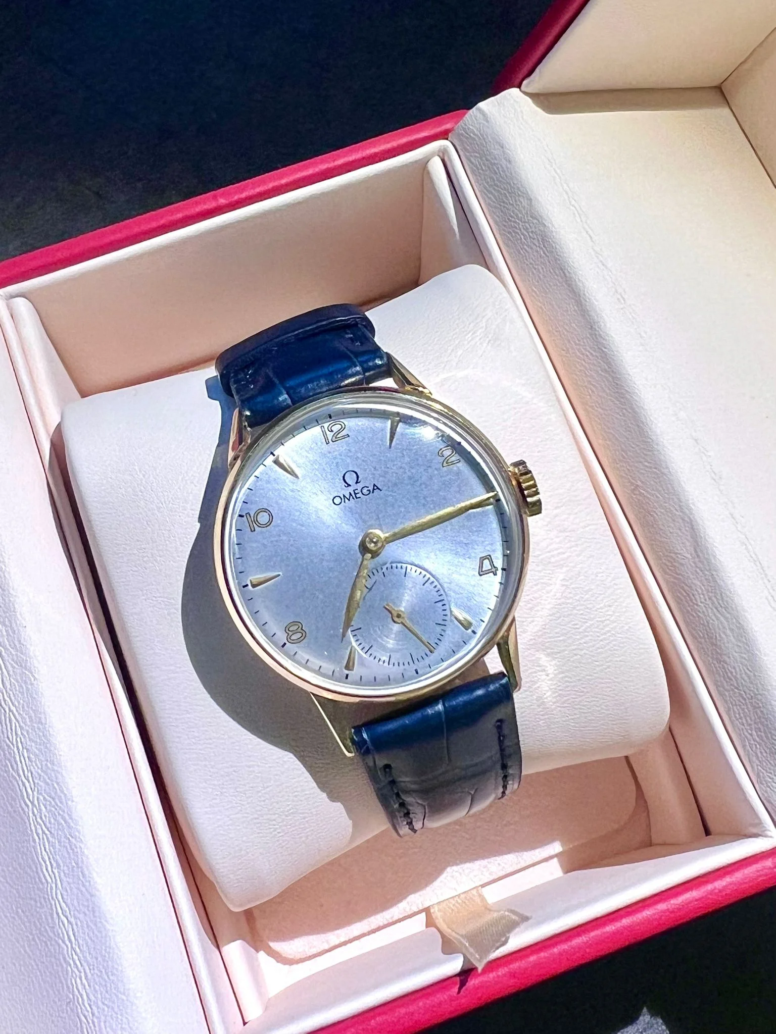 I’d like to share the story behind my Omega watch. I inherited this watch from my grandfather, who is now 97 years old. He and his twin brother each received the same watch from their father on their 18th birthday.