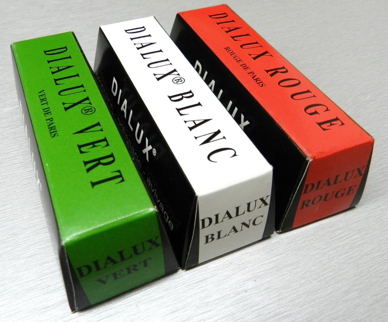 Personally the only Dialux I use is grey - this is a more aggressive compound for removing heavier scratches in hard materials, such as stainless. I generally use this with a hard felt buff that doesn't wrap around the surface I'm refinishing when pressure is applied - this is how you preserve sharp edges. It brings up a good shine, and then all that is needed is a colouring compound that applies that final lustre. For that I used an unstitched muslin buff, with Picasso Blue compound.