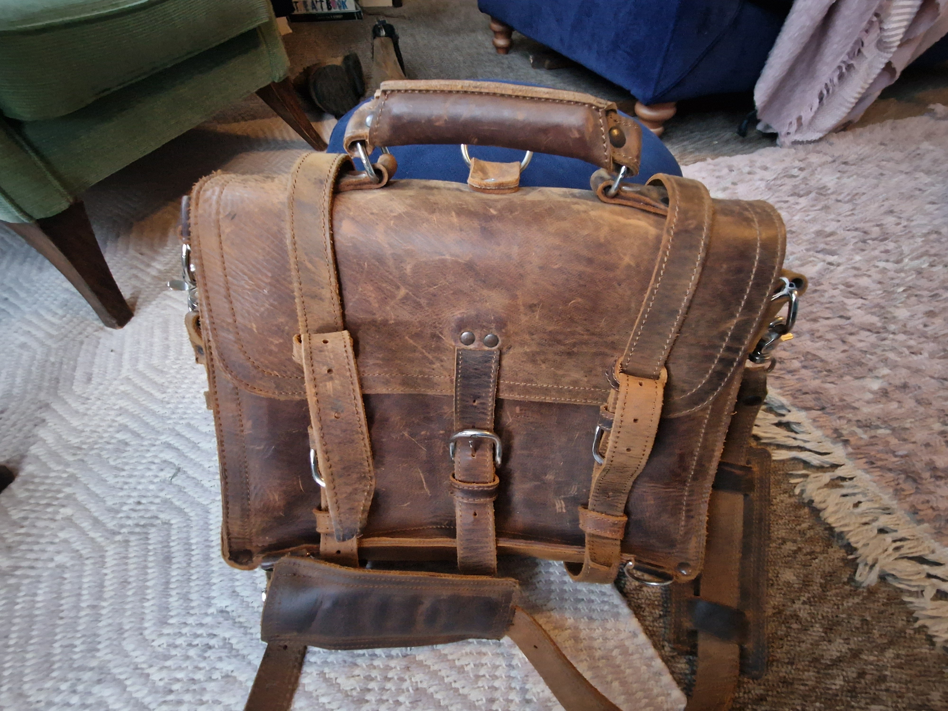 Absolutely best advice here. Also my experience. Those beautiful leather satchels/briefcases made to last 100 yrs are not really made to be regularly carried hanging from your shoulder, they already weigh a few kg empty and those straps... well, I spent a little fortune on shoulder/neck massage until I saw the light of cross-body design and got one of this: