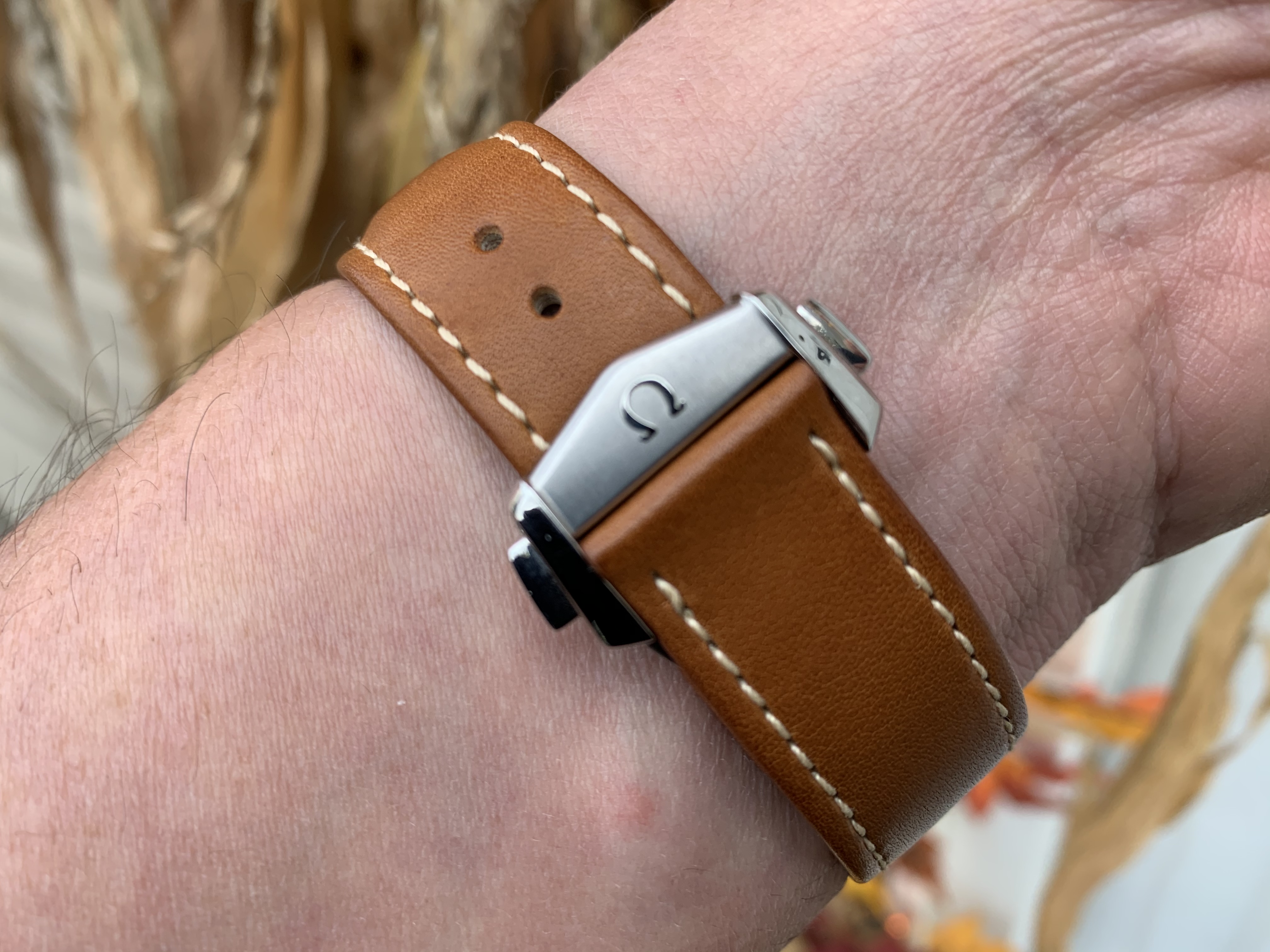 it’s the genuine Omega tan color with the deployant clasp, which I’m LOVING.