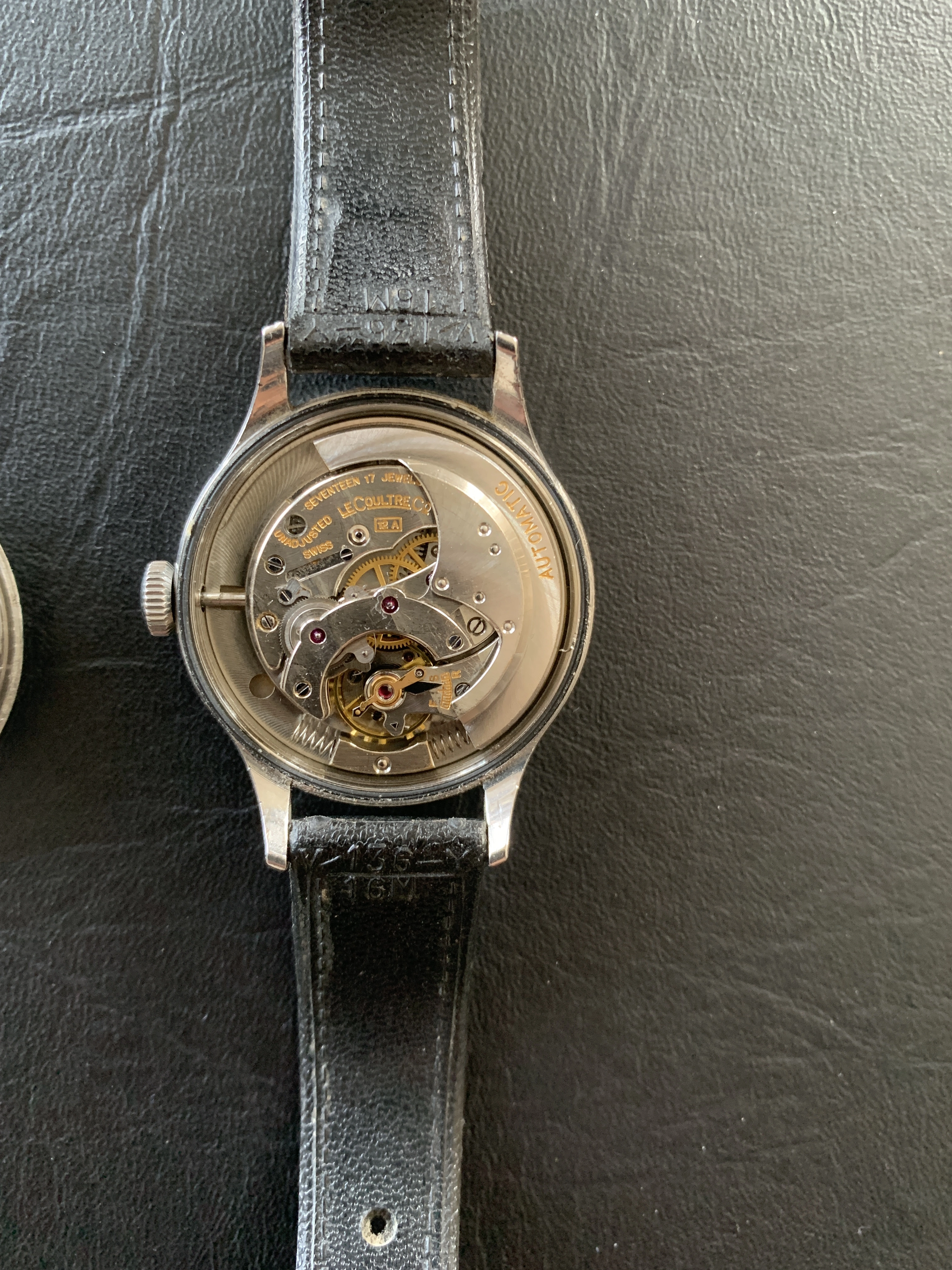 My research hasn't yielded much about this watch other than it's the very first automatic movement by Jaeger-LeCoultre. The 353xxx serial number suggests late 40s, early 50s. It can't say for sure as there is no database available. I've checked comparable case designs and serial numbers to guesstimate the approximate production period.