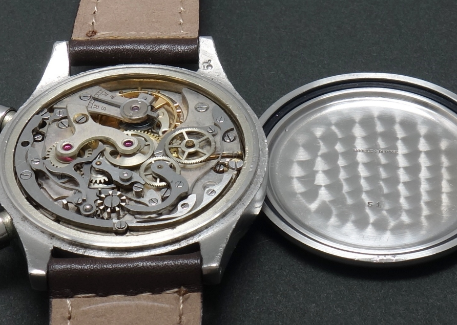 That case was faked in the 1990's in Poland and various unsigned movements were used. Most had no movement screws for the case and used that pronged spring loaded ring, which never really fitted. As far as I remember the dials came from a German Dial repainter, Bethge. Everything looks too good to be vintage and it isnt....