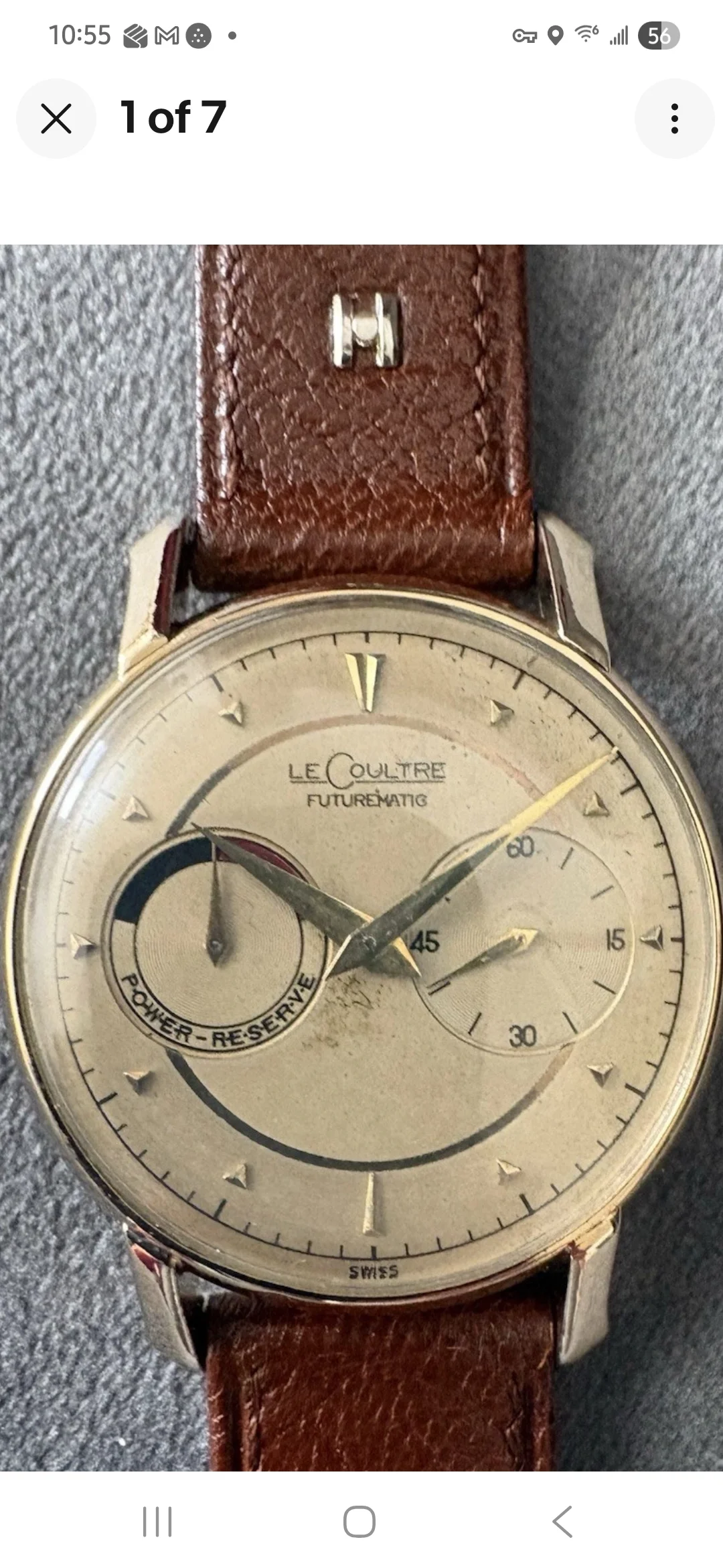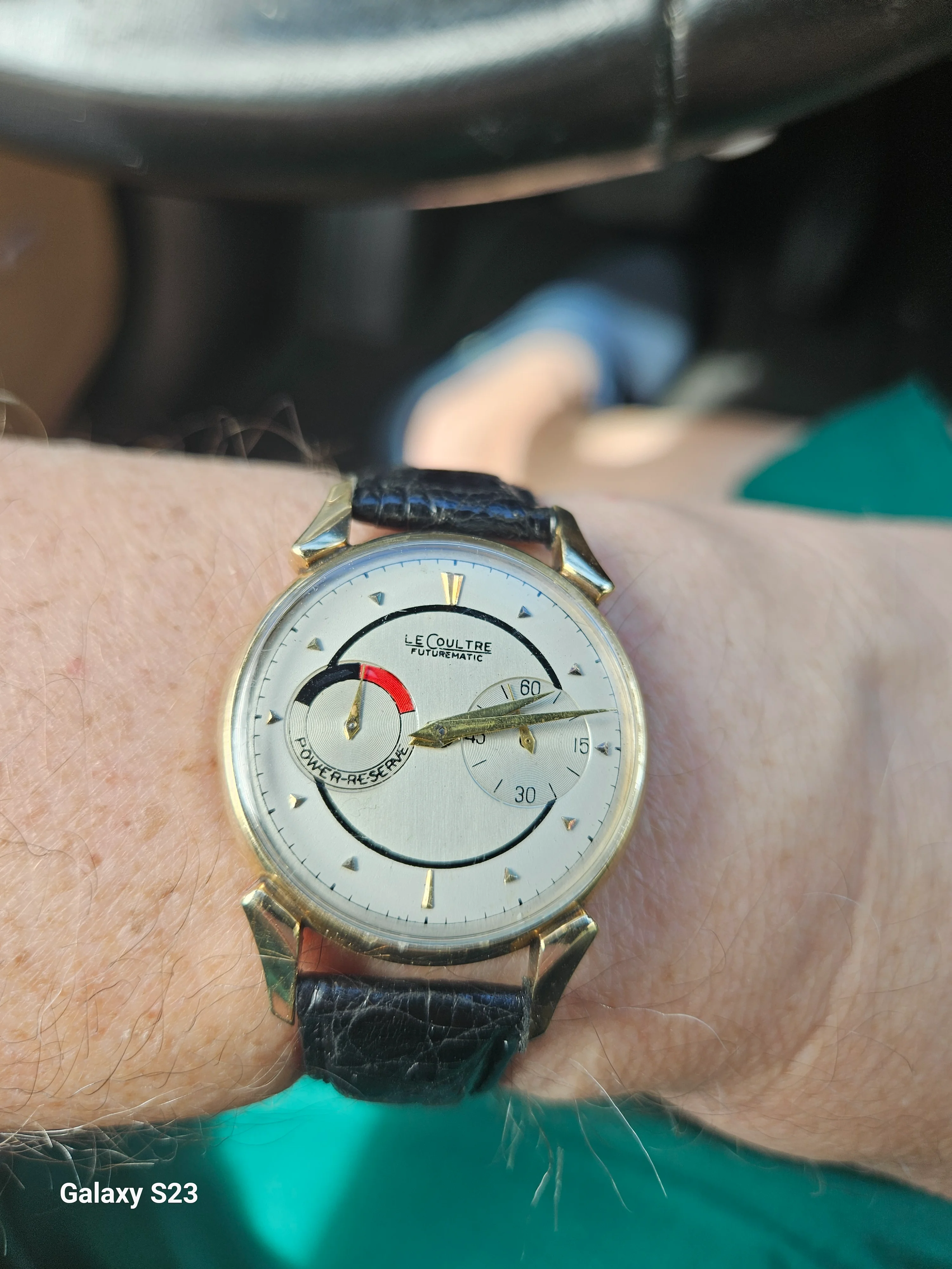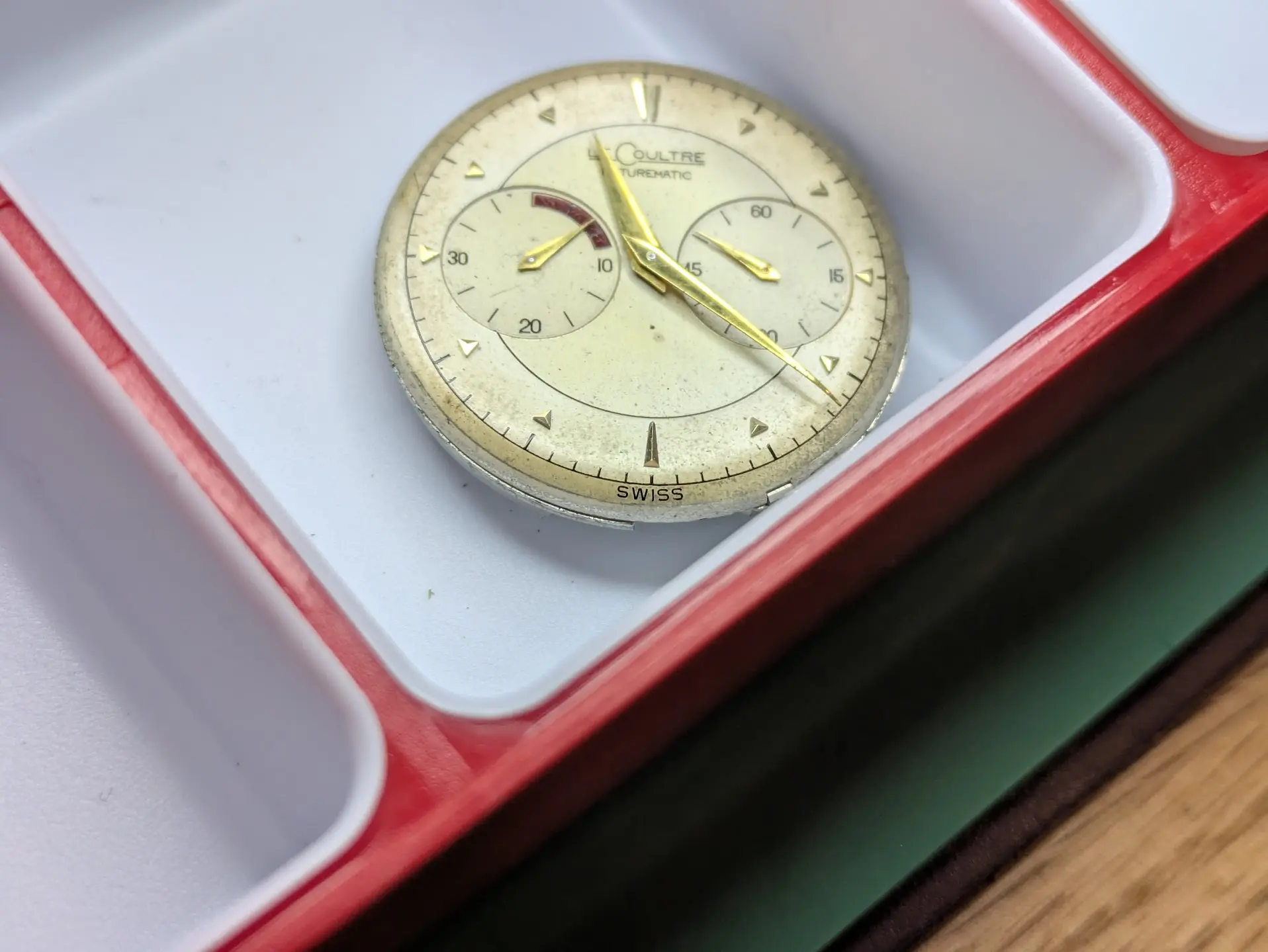 ·Looking for some input from the group on this LeCoultre Futurematic (cal. 497, gold-filled case). Movement looks correct and honest, but I’m unsure about the dial. The overall layout is right, though the printing—especially the “SWISS” at 6 o’clock and some of the text weight—gives me pause when compared to other known originals. I’d appreciate experienced eyes weighing in. Thanks in advance.
