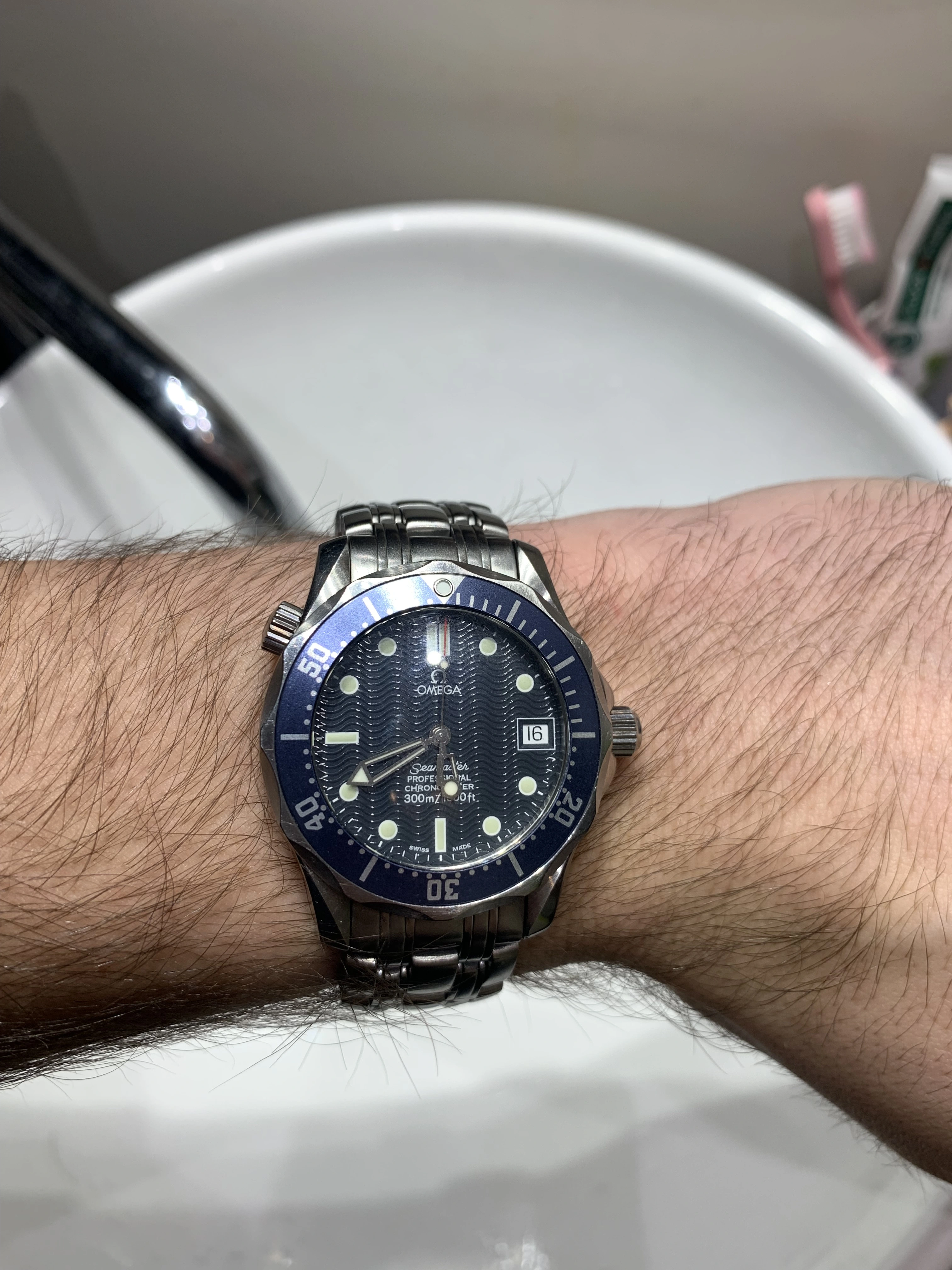 ·Hi guys ! I just purchased a Seamaster 300m 2551.80 on Chrono24 from the German store Marc Gebauer. The watch is full set, and the serial number matches the one on the cards. The only thing that caught my attention is the index at 12 o'clock, which isn’t perfectly sharp because at certain angles, you can see the waves of the dial beneath it (Only on the inner edges).