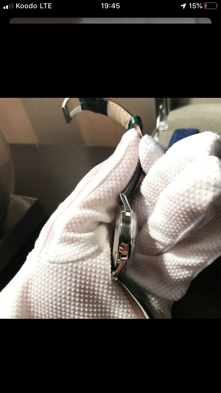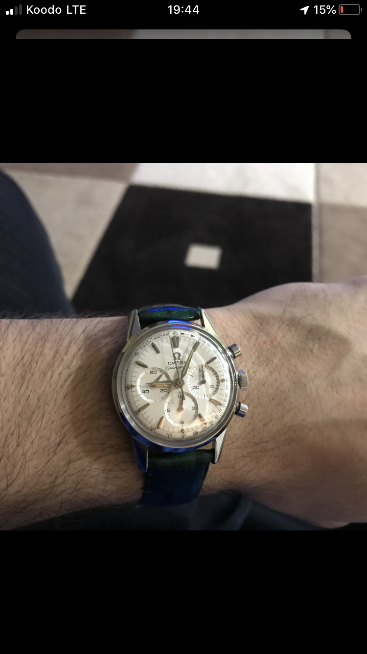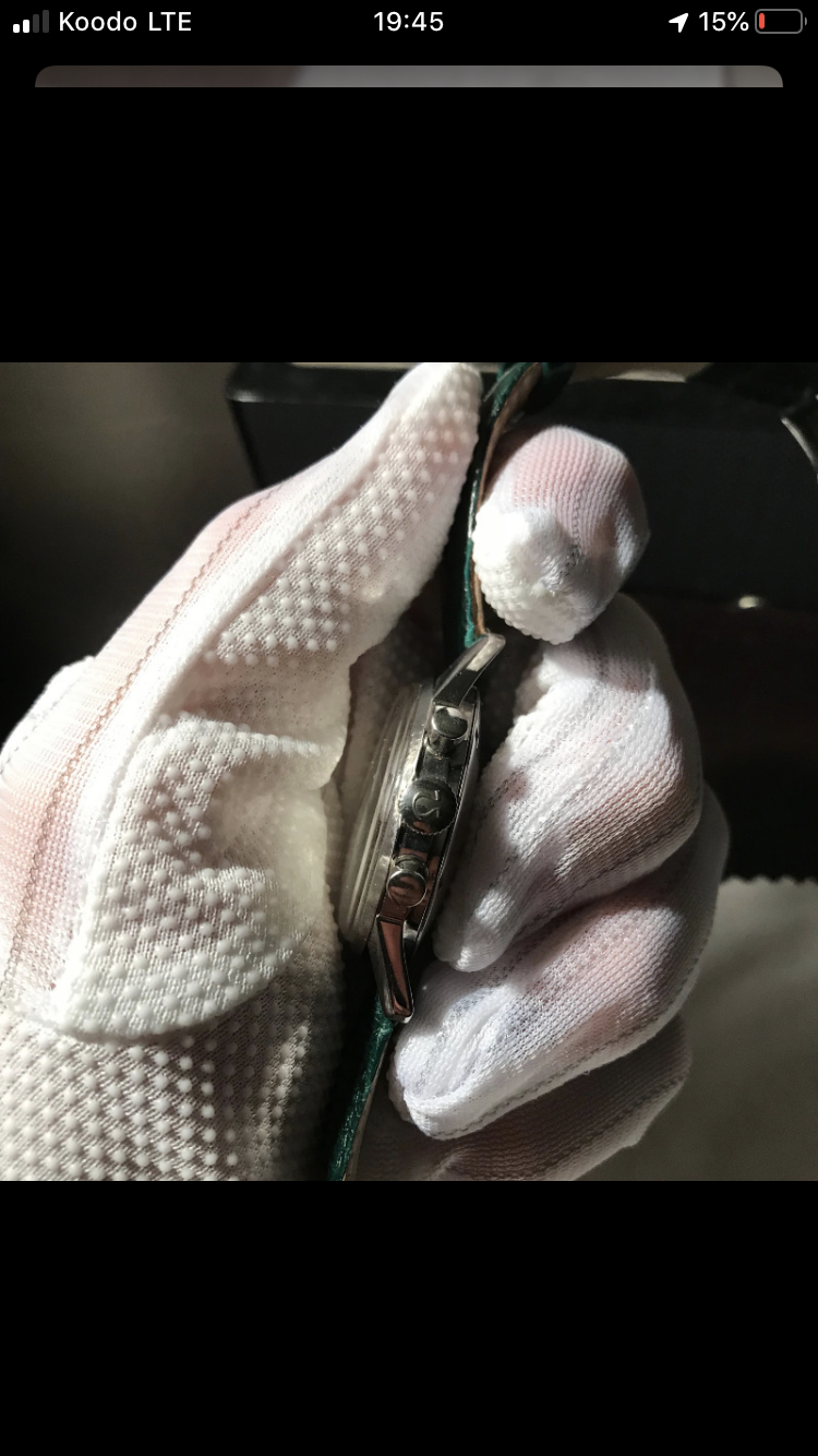 My first thought is the seller was careful enough to wear white gloves for part of the shoot, yet was also careful enough not to take any real close-ups of the dial, or to get any movement photos to prove there is a decent 321 inside. And the side shots are also too far away/ too low rez to judge much, although it does look like the lugs are polished a bit. I would want to see much better photos before thinking seriously about it.