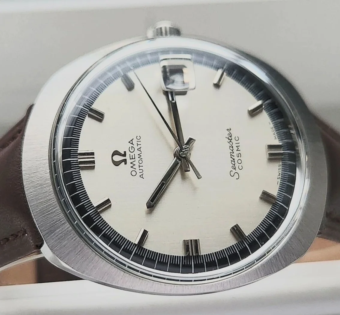 It's hard to make out from the photo, but I think the serial no. dates it to 1969. The dial appears very (too?) clean. Unclear whether it's the original crystal either. There appears to be no lume on the dial, batons or hands, and consequently no 'T' accompanying 'Swiss Made'. I've seen similar Seamaster Cosmics with the same and similar design with lume - were they ever made without it? Thoughts very much appreciated.