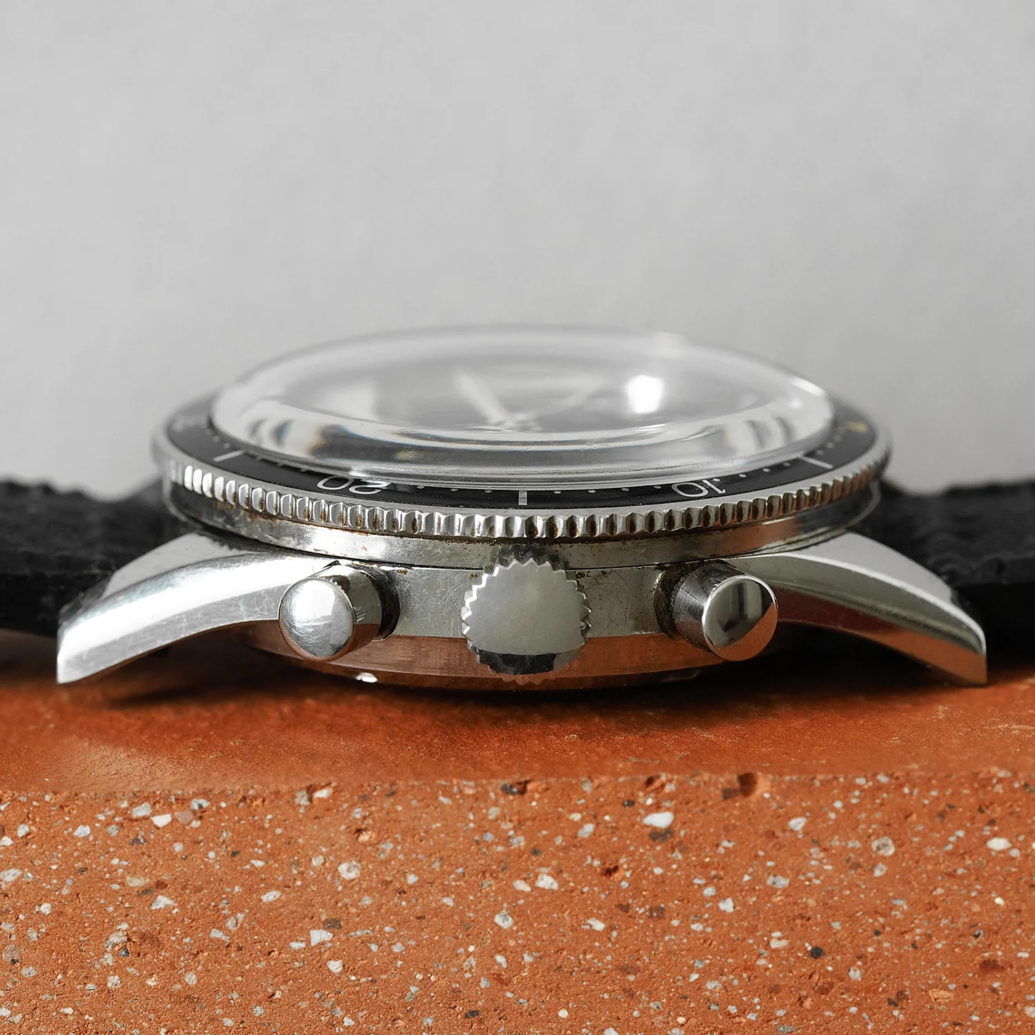 Dial: Matte black dial with a very attractive white, blue and red regatta countdown subdial. Original tritium lume within the indices and handset is intact and has developed a beautiful patina.