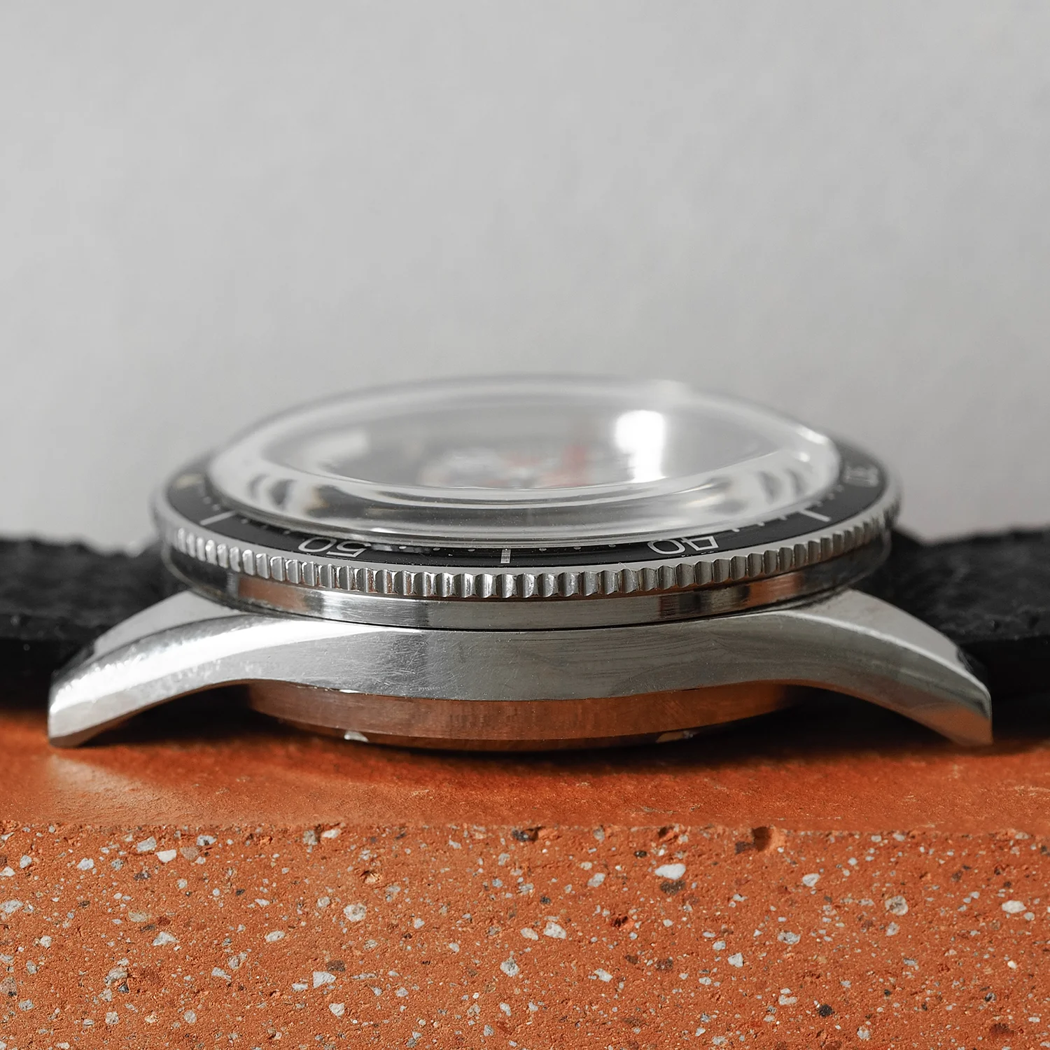 Insert / Bezel / Crystal: “Count up insert” with luminous triangle at 12:00. Rotating bezel. Original plastic crystal.