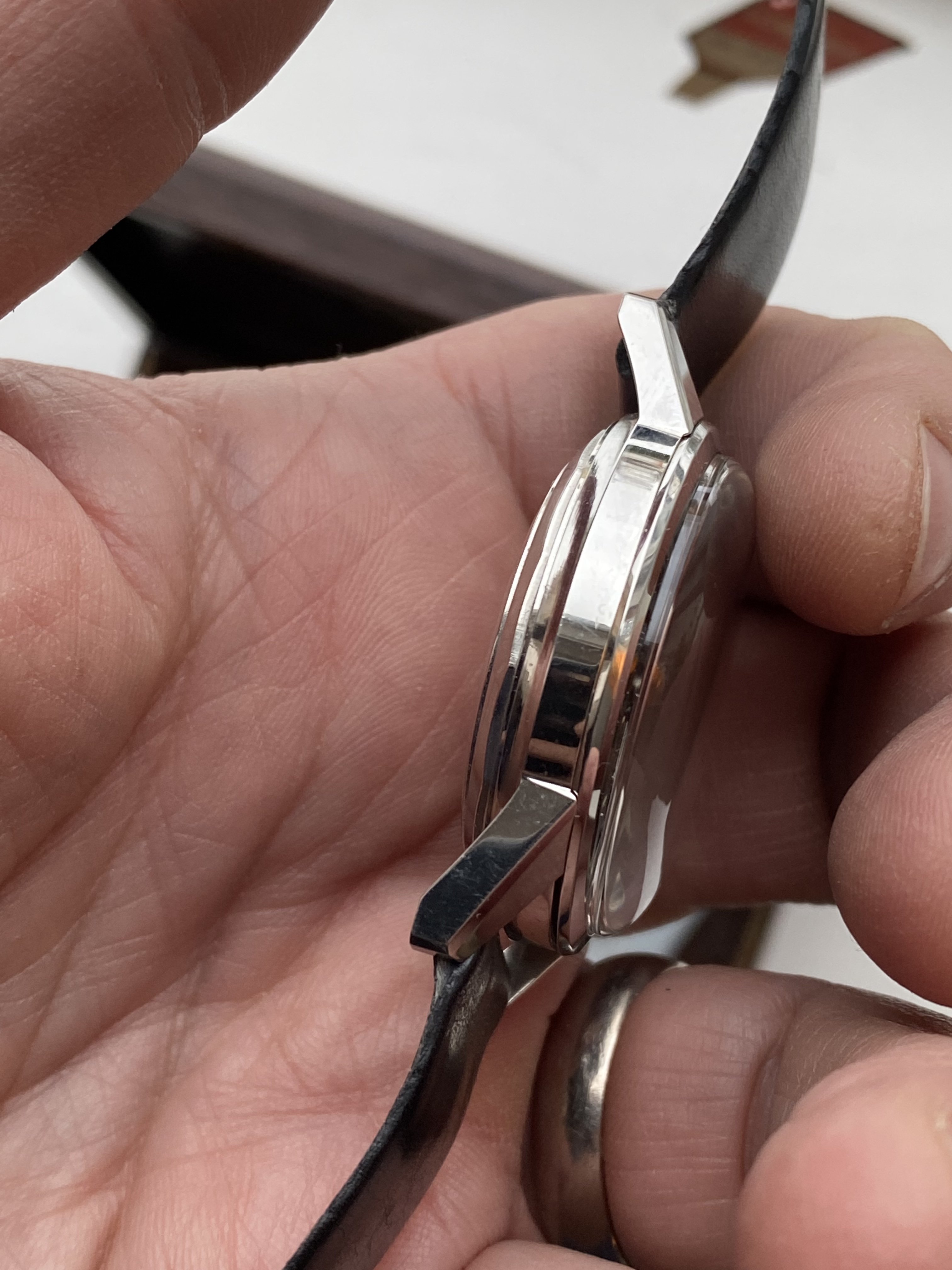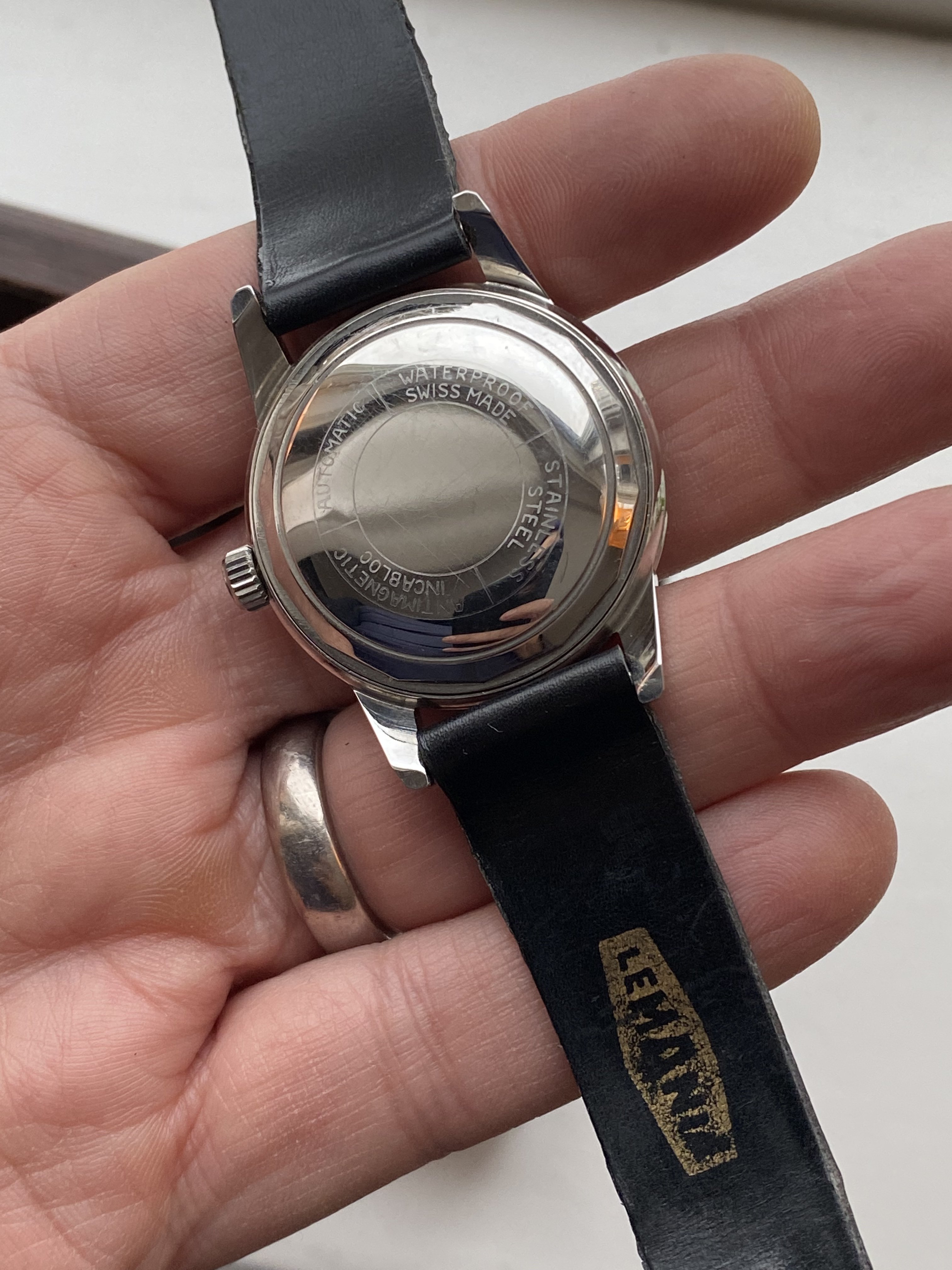 I've got a Like NOS Lemania caliber 3615 Automatic for sale. Comes with box (no pillow), instructions in Swedish, hang tag with price. Original strap with original buckle which has started to "dry up". Why I say LNOS For some reason there is a super Compressor crown on it which shouldn't be there and I can't say when/how it got there. I opened the case and from what I can see none of the screws has been touched but I've been wrong before. Updated with some additional pictures of the movement and made a reduction on the price.