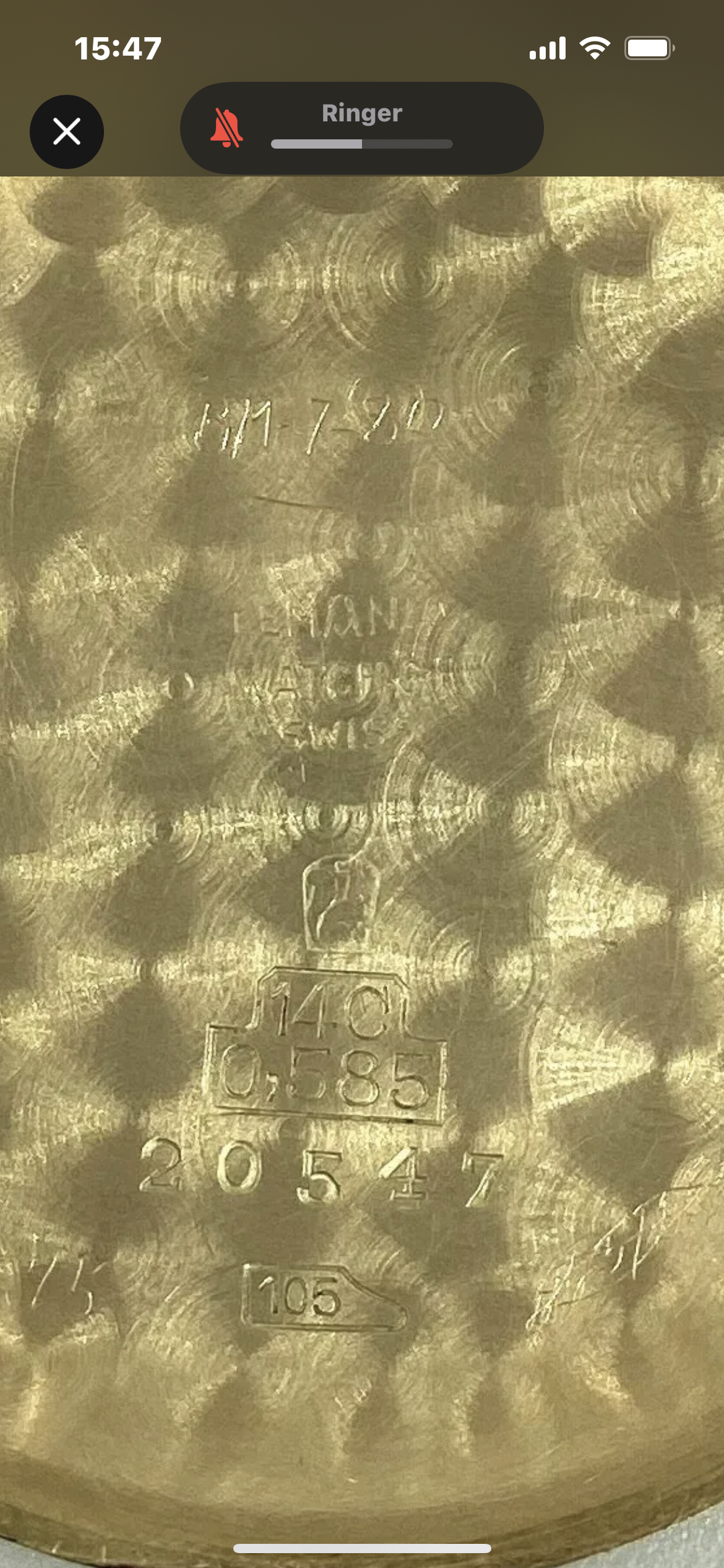 On these Lemania, and several others in gold from Lemania, the hammer head mark with a number in it, the number is 105.