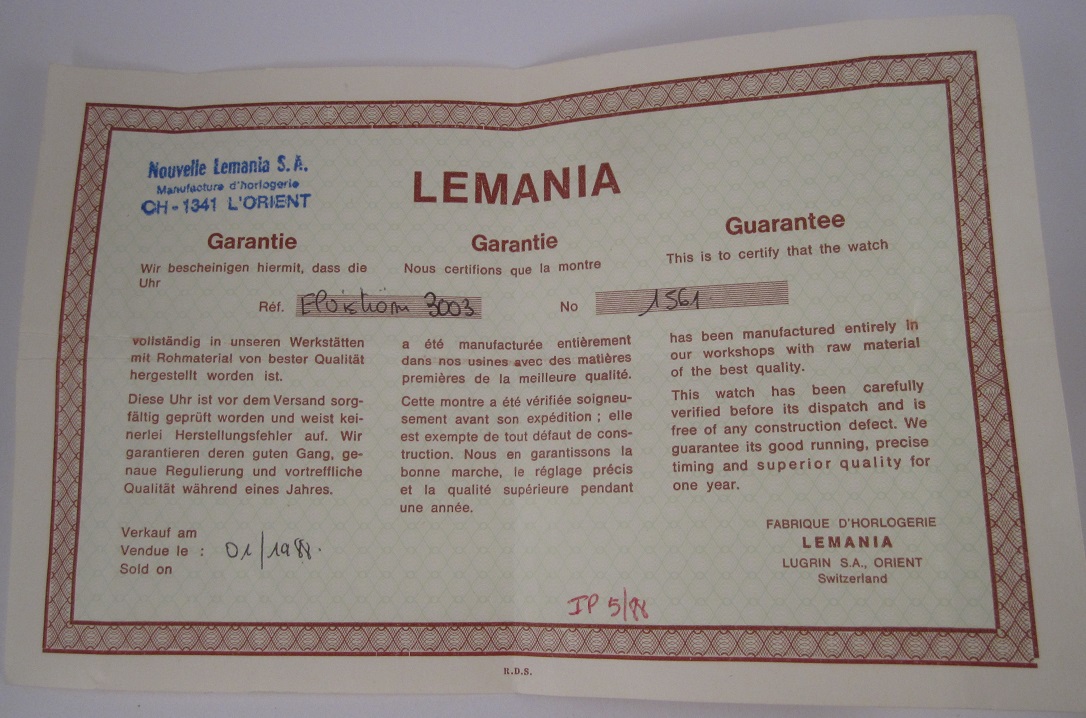 I´m pretty sure I have a certificate to the watch also. If and when I locate that piece of paper, I´ll update the sales ad, and will attach it when I ship the watch.