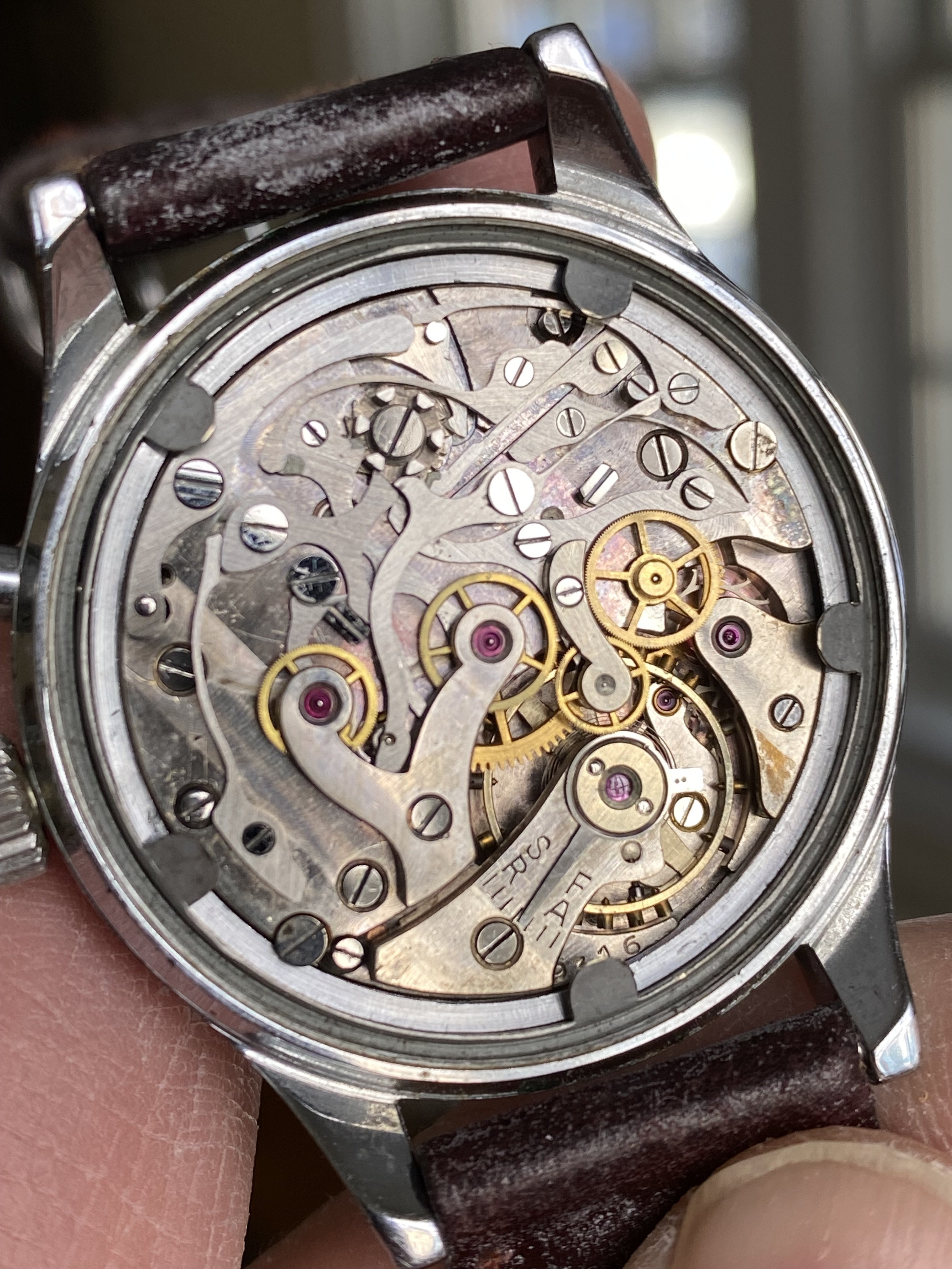 I recently bought this Lemania monopusher. I think the movement is a 15TL variant and the case is chrome. I was hoping to get some more information on this such as when it may have been manufactured and whether the dial and case seem original to the watch. The case clamping with the tabs on the edges, the dial style, the chrome case, and the movement suggest to be 1930’s or 1940’s? The case measures 36.5 mm and the lug to lug is 44 mm. Thanks!