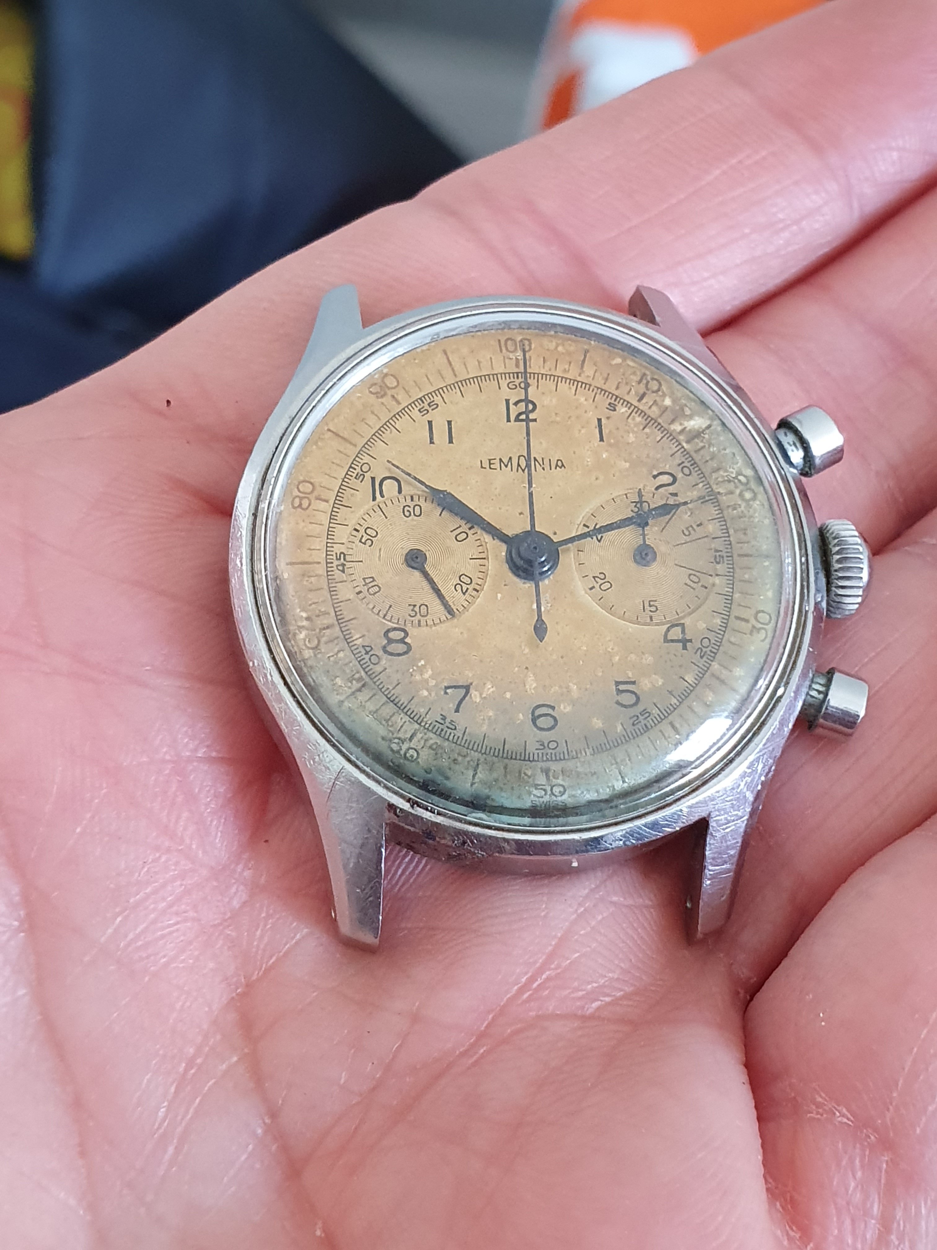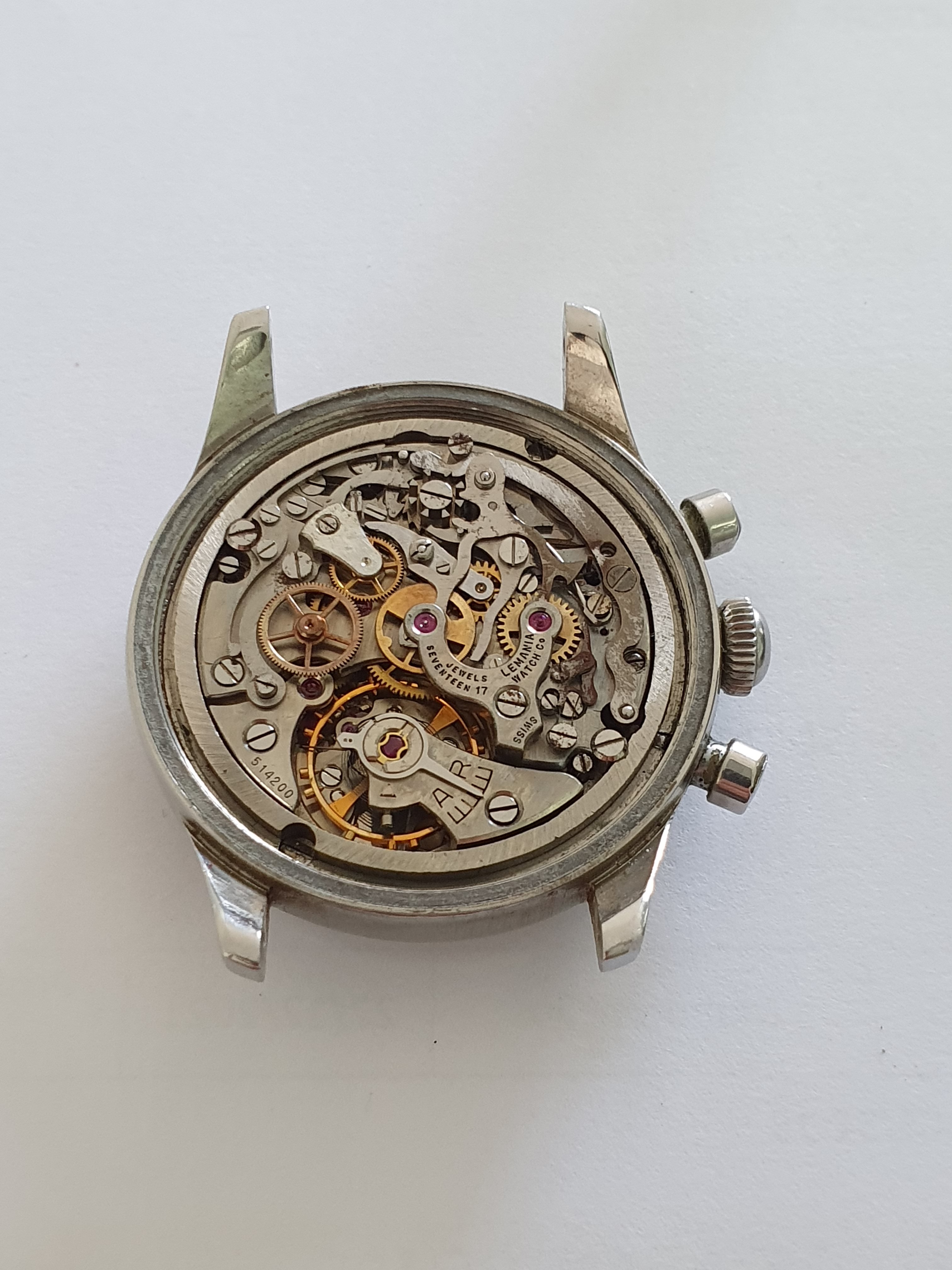 This 37.5mm 15TL (I believe) chronograph arrived today exactly as shown (yes, with the crystal detached!). Heading to my watchmaker soon..