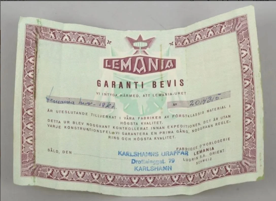 The watch also cames with a Lemania box and guarantee