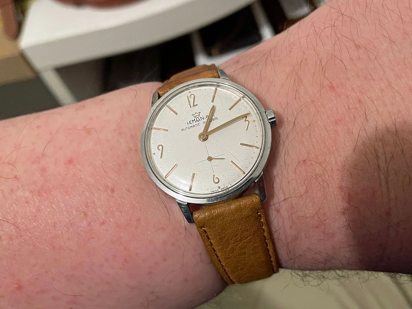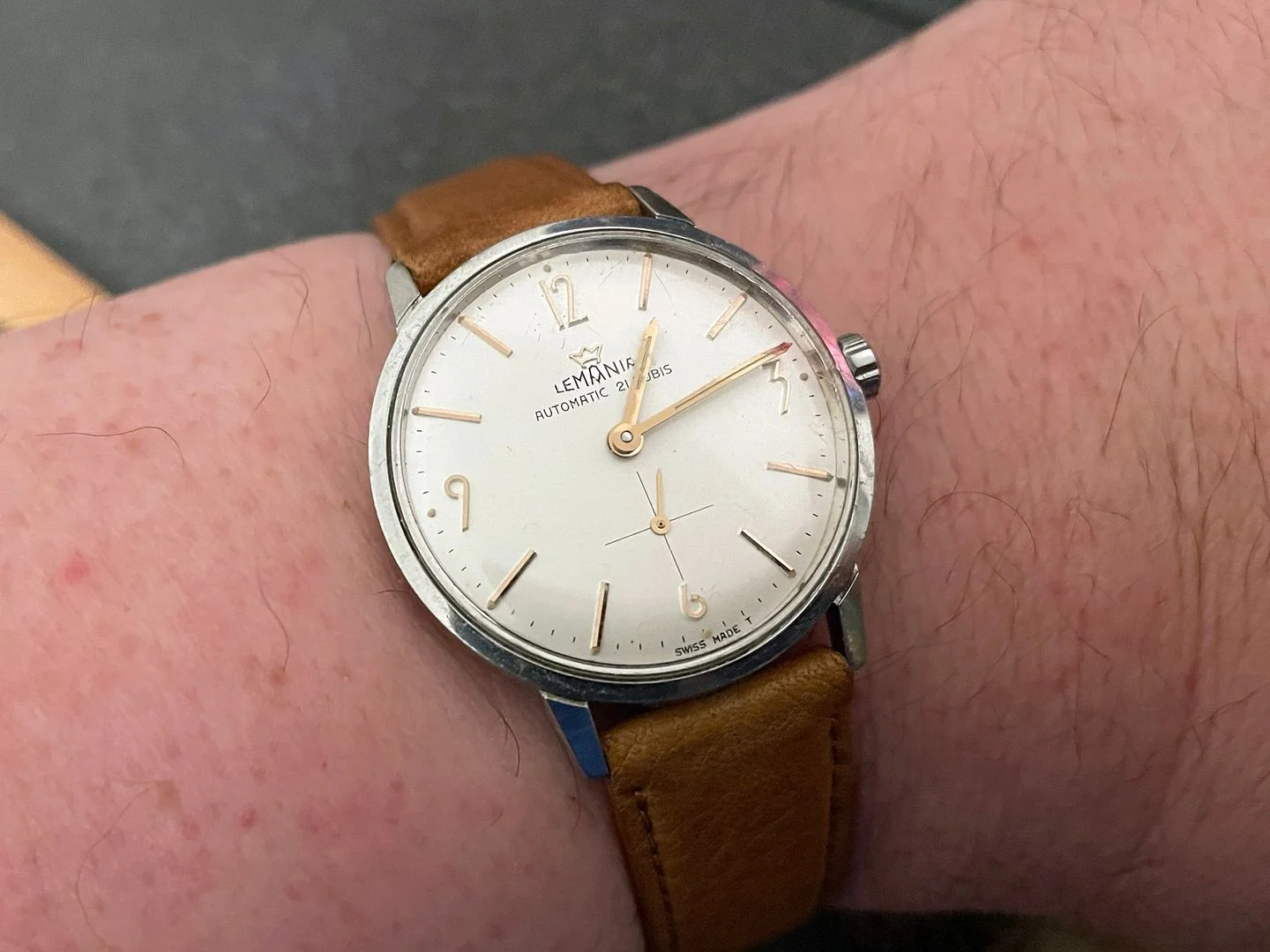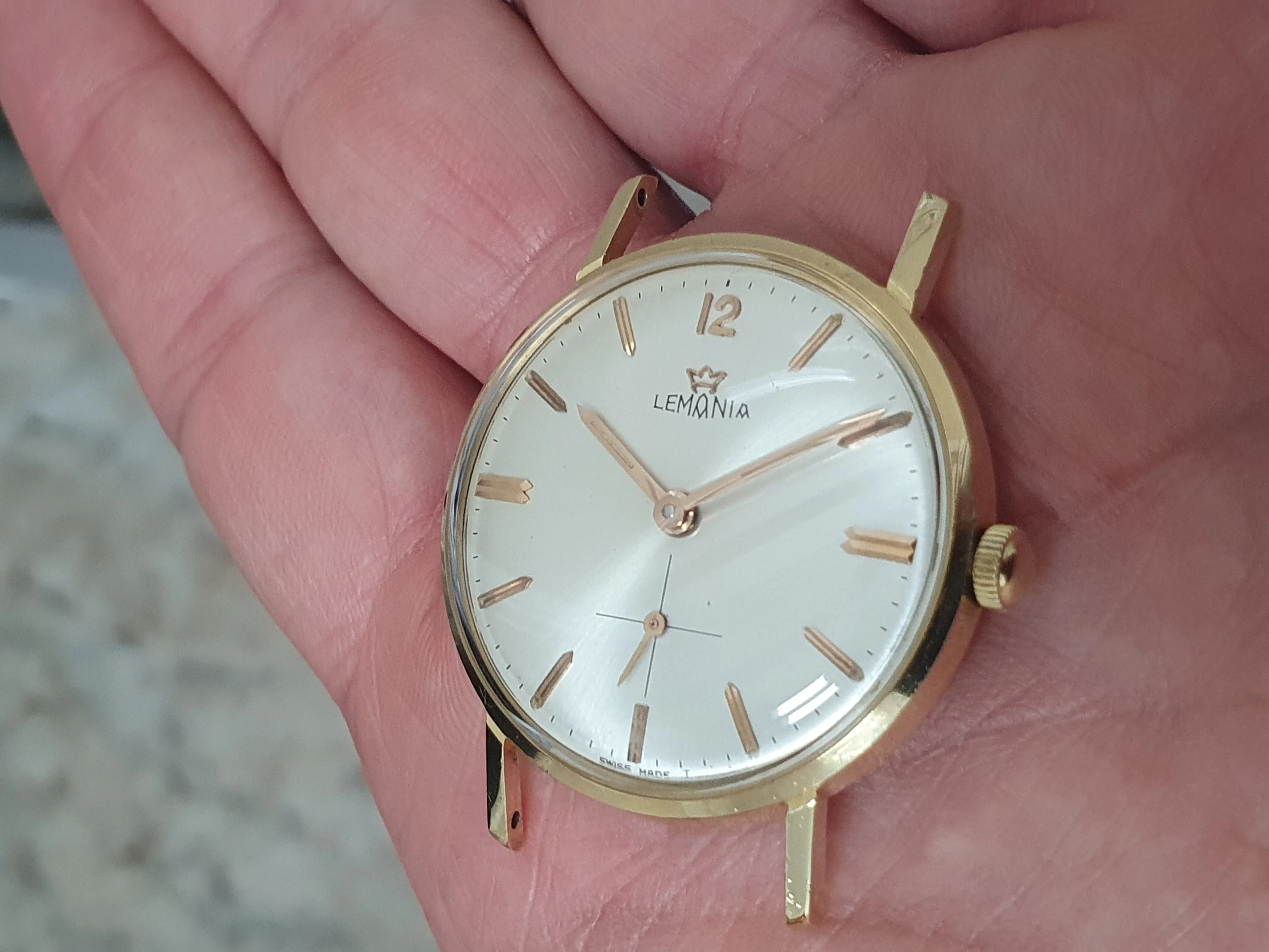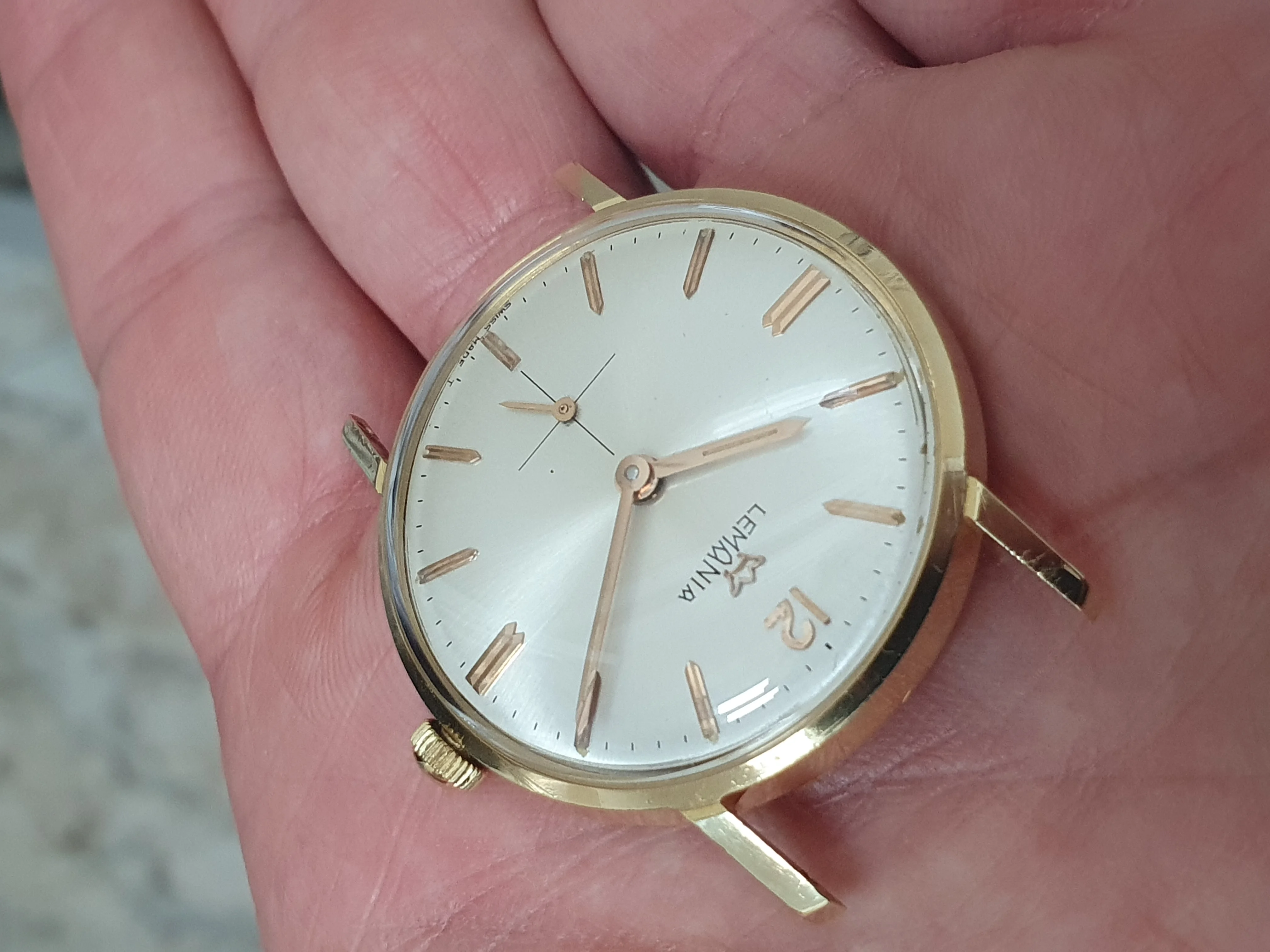 Photos of my most recent acquisition a 18kt gold Lemania.