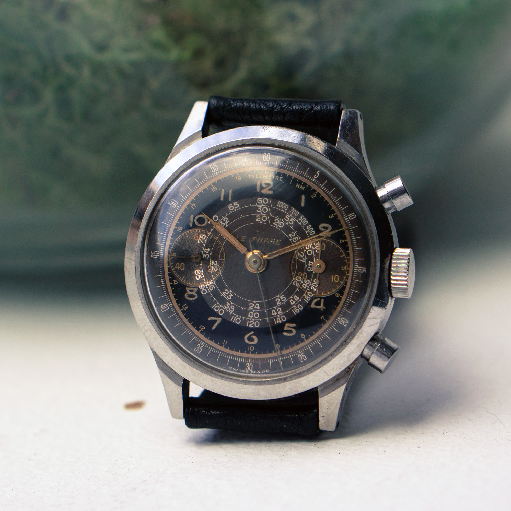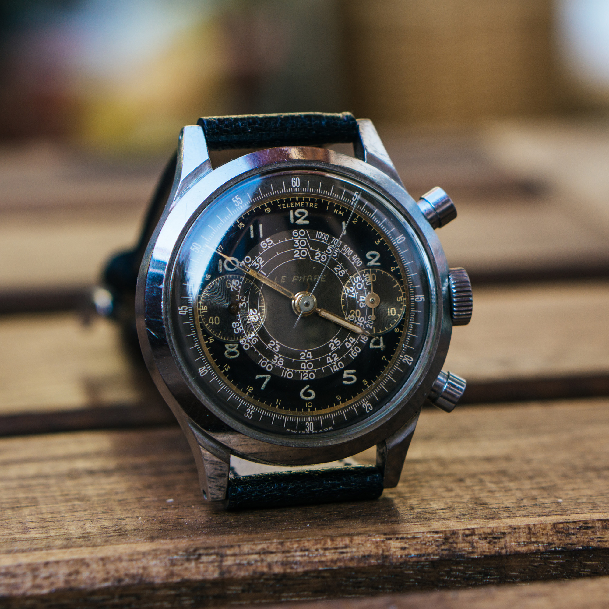 since I have to fund a personal grail, I have to sell this rare chrono made by LePhare. Special about is the big size of 38mm, a Valjoux 22 and all covert in a waterproff Spillman case.