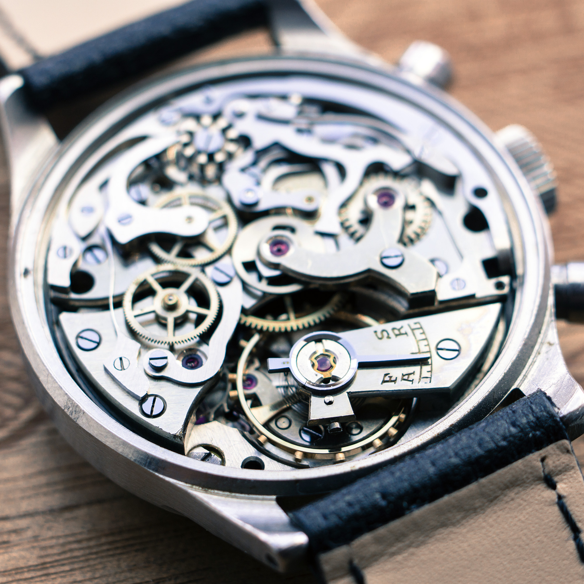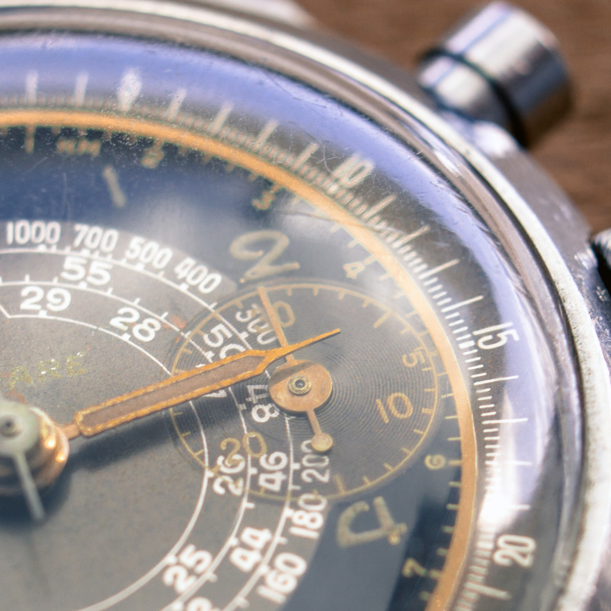 Movement: The Valjoux 22 is running and holding time (+36sec a day/ 278° / 0.2ms). Chronograph starts and stopps. Also resets to 0.