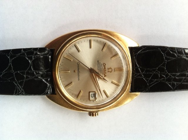 ·Hi OF, I am new to this forum and just stumbled on it while searching vintage watches for sale. I inherited my dad's Omega Constellation many years ago when he passed away during my teenage years. It has always had great sentimental value to me, but I never wore it as I always liked larger watches. I recently had it serviced and bought an aftermarket strap and new-style Omega buckle for it. I have recently come to really appreciate vintage watches and I became intrigued with learning more about the Omega brand in general, and this watch in particular. I have read Desmond's dissertation and found it extremely informative. Sorry but I don't know the model number or any other information other than it is a C-cased Constellation plated in gold or maybe rose gold? It has a T Swiss Made T dial and I believe the dial and hands to be original. I found that if I charge the dial with a bright flashlight, the hour plots and hands glow brightly for a minute or two. Is this normal for old tritium to still glow like this? I know that some of the tritium used on Rolex's from the 60's also glows for a short period of time. I would love to hear comments about this as it has me questioning the originality of the dial and hands.