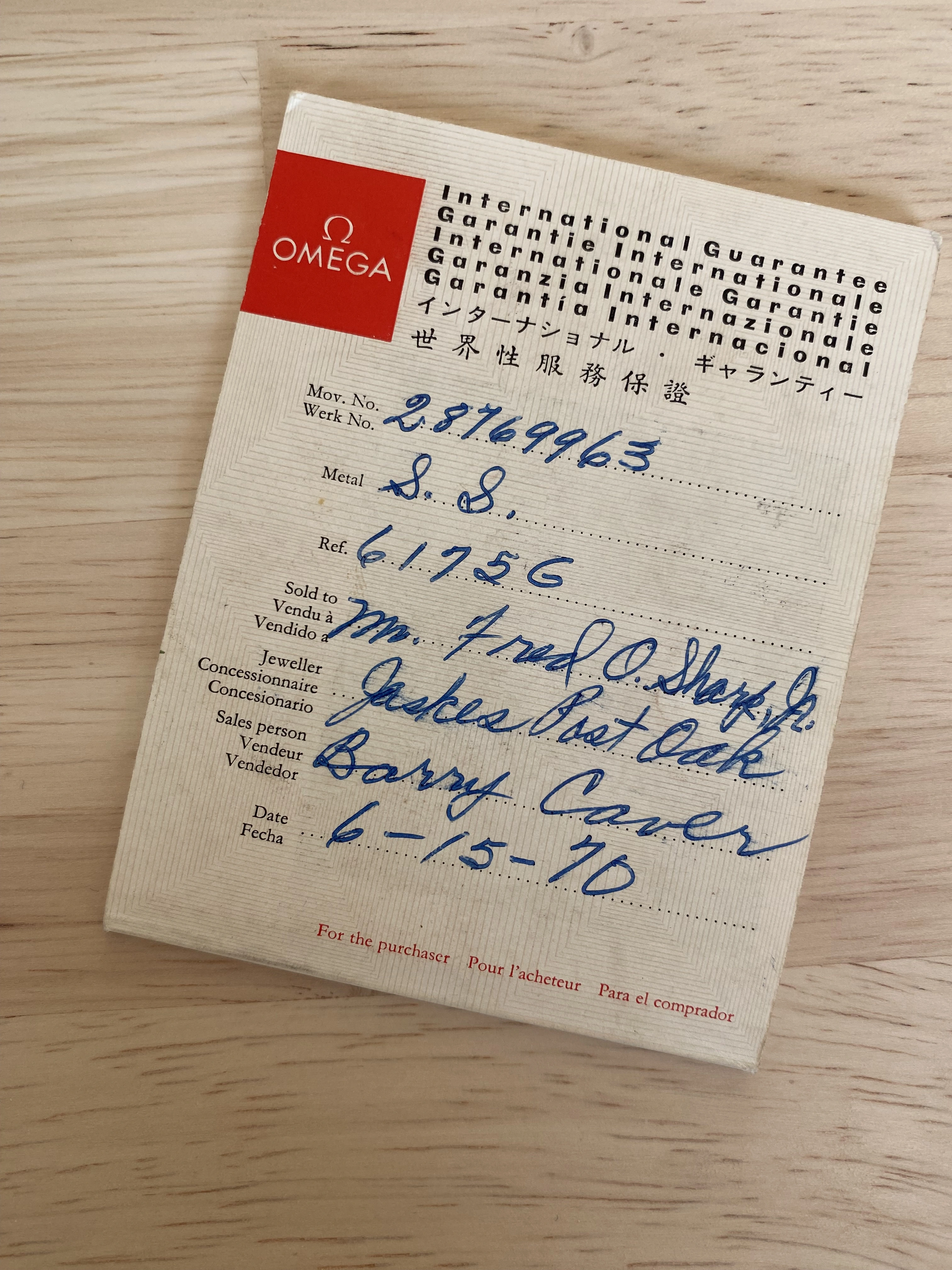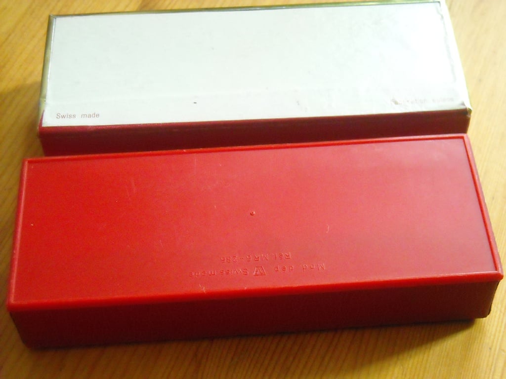 I understood this is a late 1960s box which matches with the sales date and the serial date (1969). Based on information ao on Desmond’s page I understood it housed a cal. 564 or 751 watch so either a piepan or c-shape.