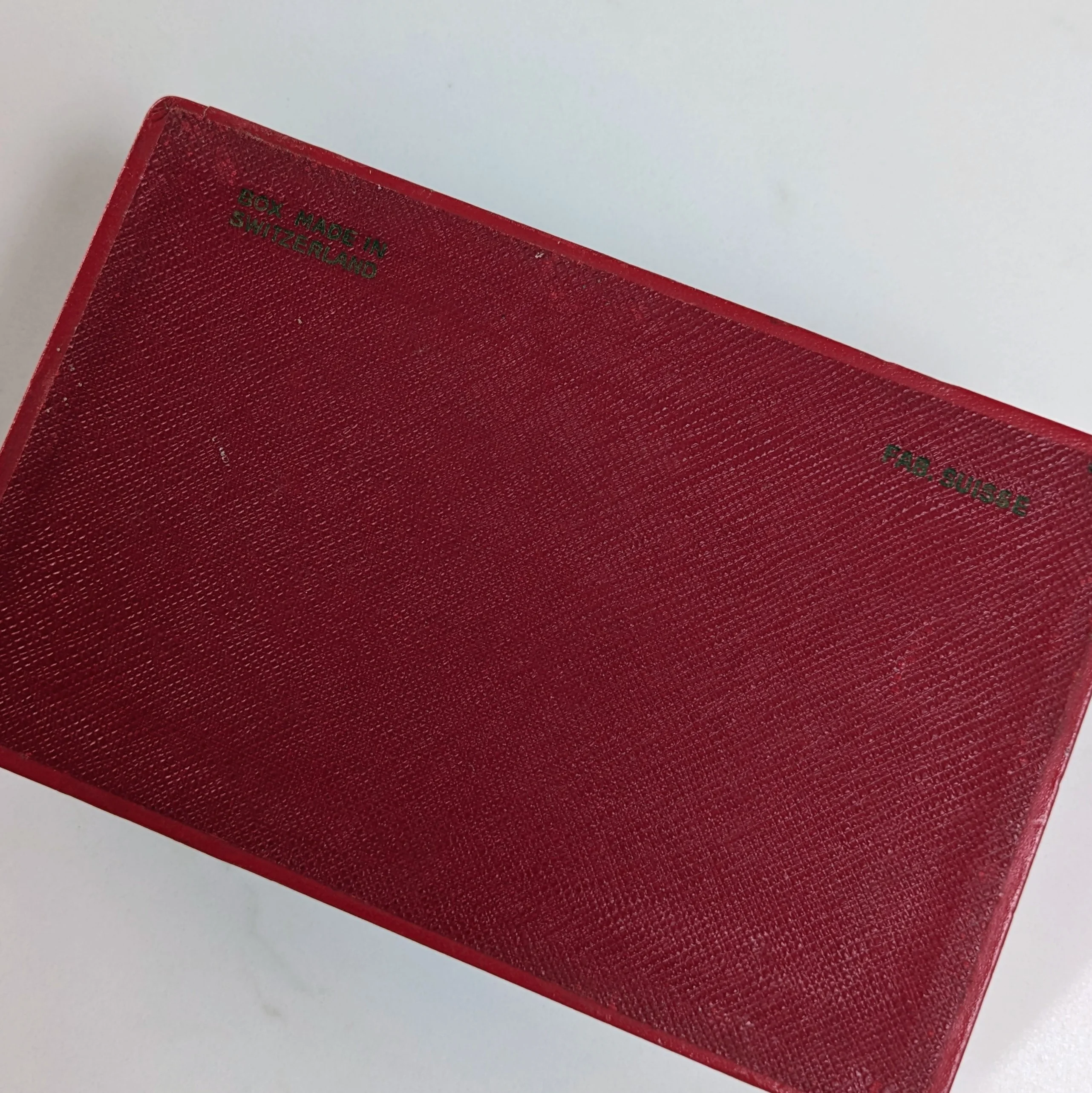 I have one that I haven't seen before, nor in this thread it seems. It's part of this Speedymoon set and I can't find any conclusive info. Some sellers claim it's 50s, other 60s and one vintage dealer 80s, which should match the Speedymoon from the mid 80s and it matches the rectangular shaped booklet, but that's from 1987. The velvet spring holder reminds me more of the 60s era. Does anyone know which era this is from?