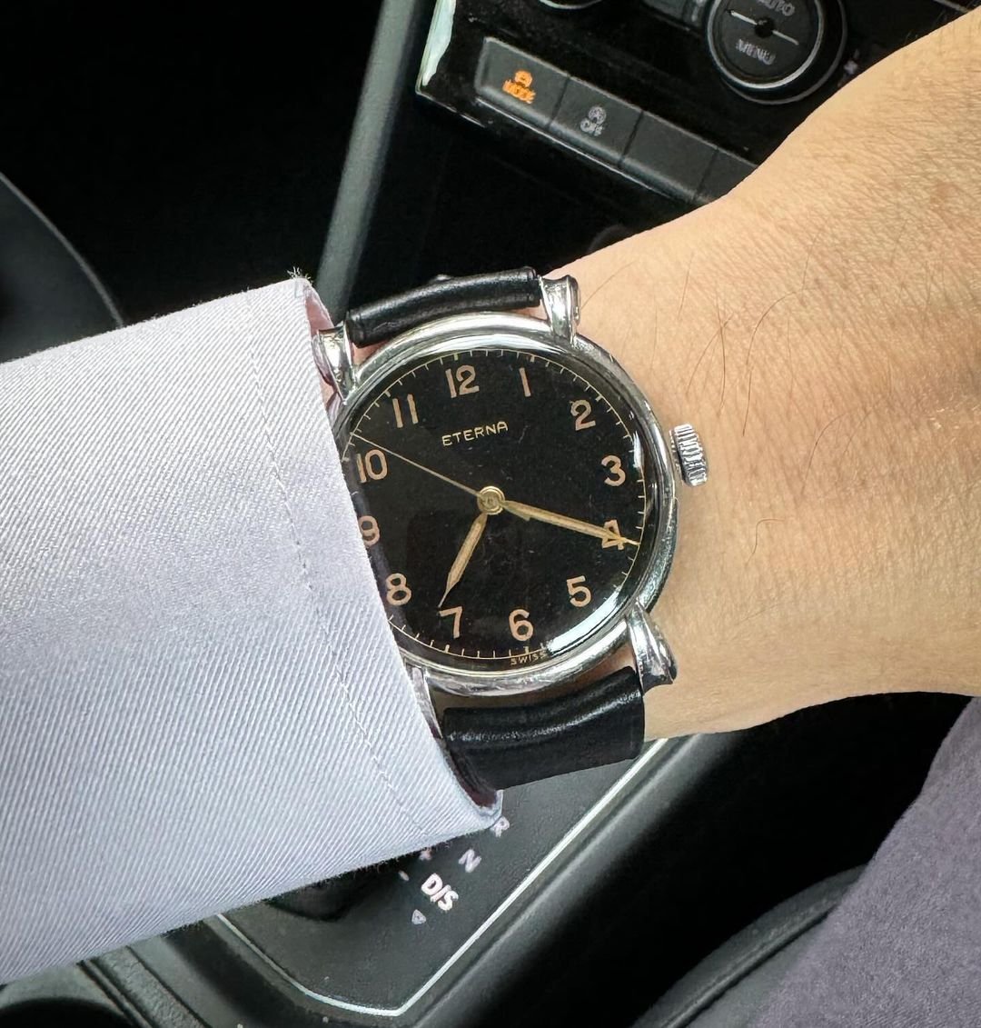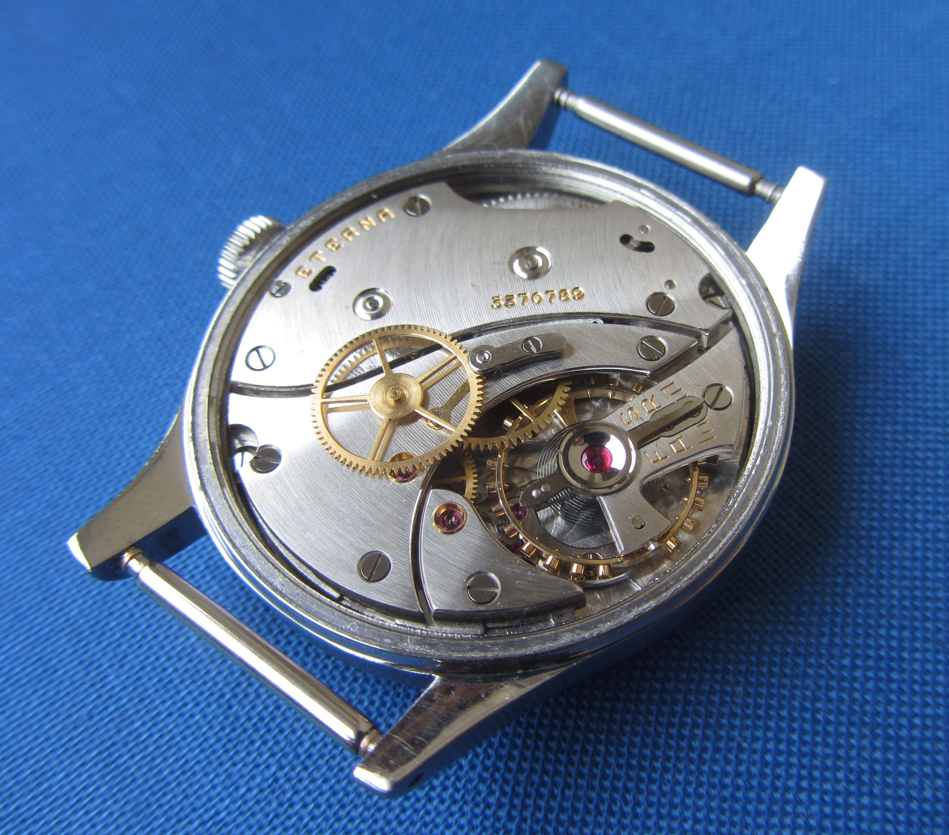 ·I thought I could suggest a small but nice thread showing Eterna cal. 852 watches. The occasion is the completion of a repair of one of my current favorites, a 36.5 mm steel watch with the 852S - still without shock protection. The balance staff was broken, as well as the bearing jewel under the balance. In addition, the mainspring was weak. Now everything is like new and I am very happy.