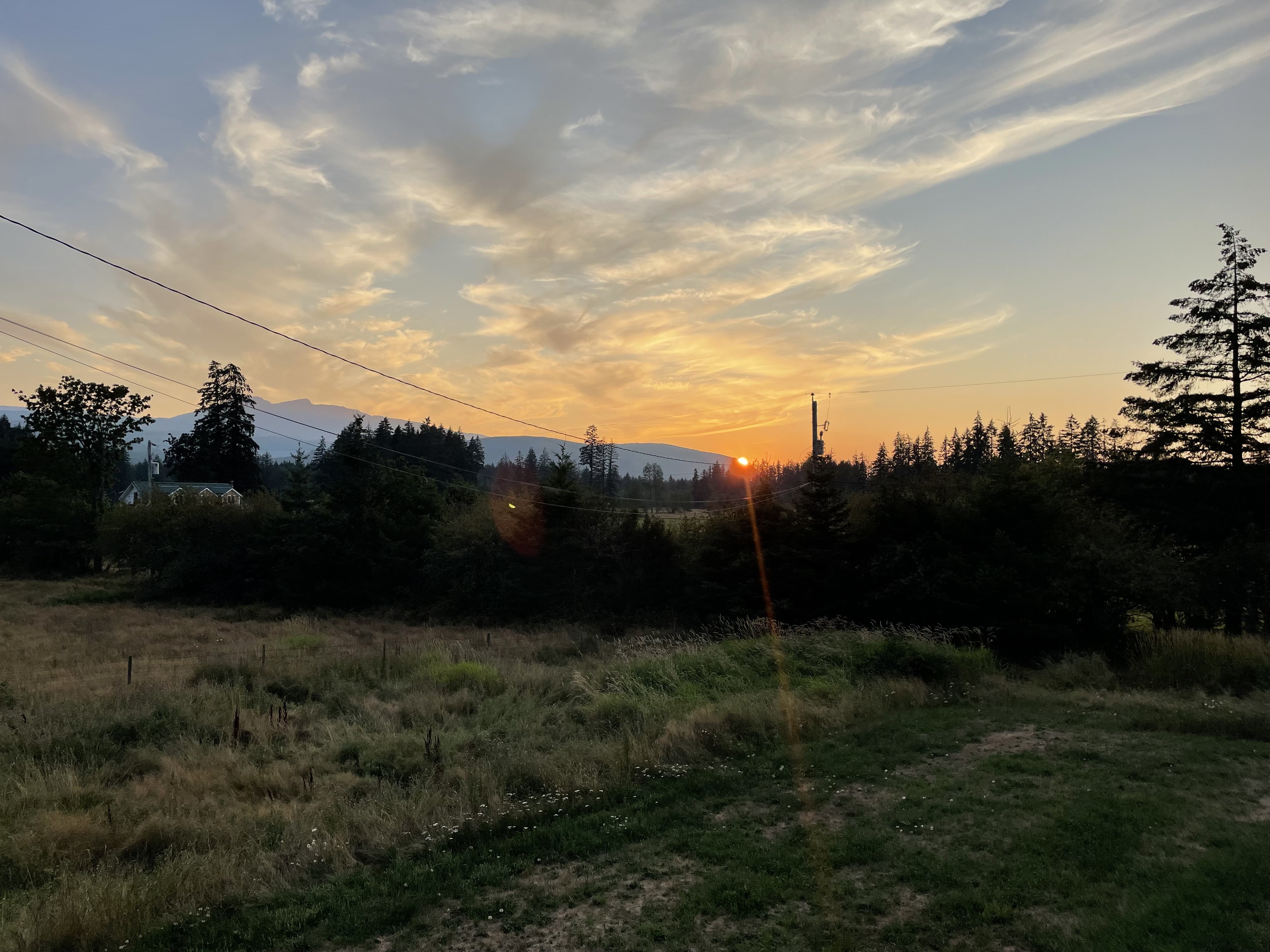 Sunset, and time for chocolate & beet brownies and some booze. In a few minutes the barn owls would come out to hunt and terrify all creatures great and small