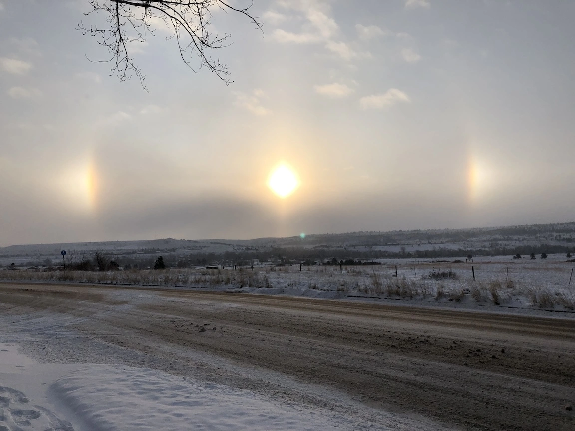 Posts 23,462 Likes 52,144 Dan S ·Feb 12, 2025 Very unusual prismatic/spectral effect this morning, looking TOWARDS the sunrise as a snow-storm moved east. Edit: I’ve been informed by someone from North Dakota that these are called “sun dogs.” Edited: Feb 12, 2025